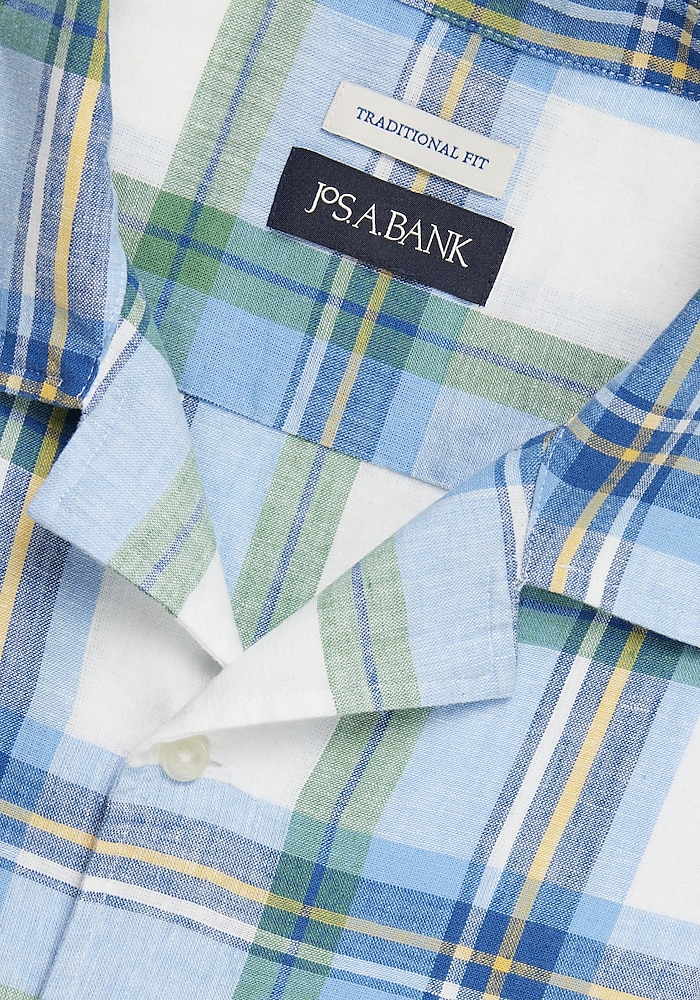 Jos. A. Bank Traditional Fit Plaid Linen-Blend Camp Short-Sleeve Sportshirt CLEARANCE#6B7Z