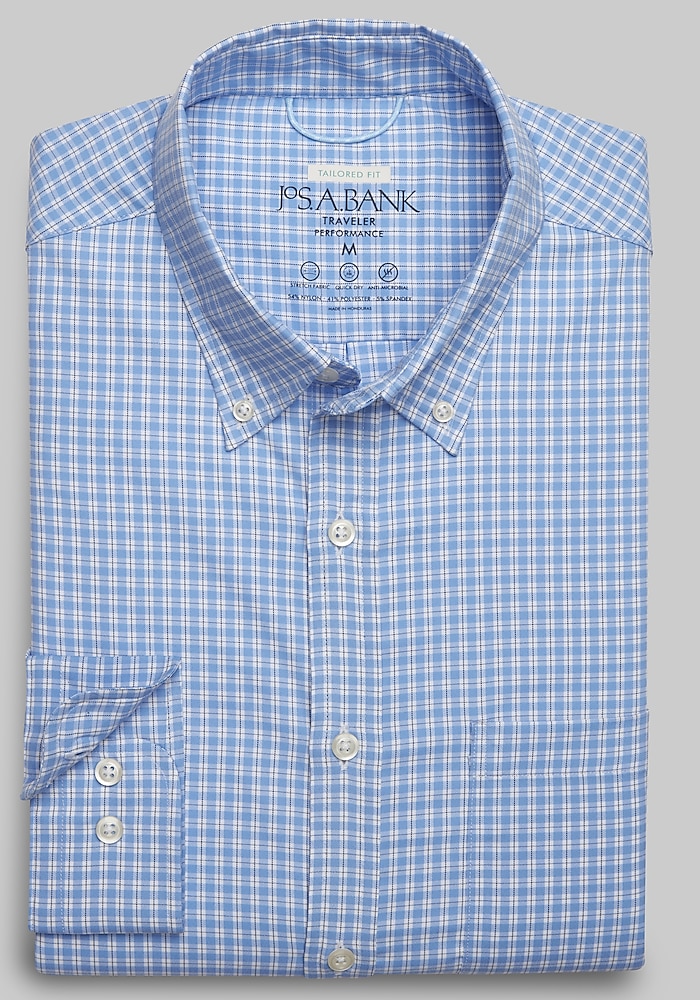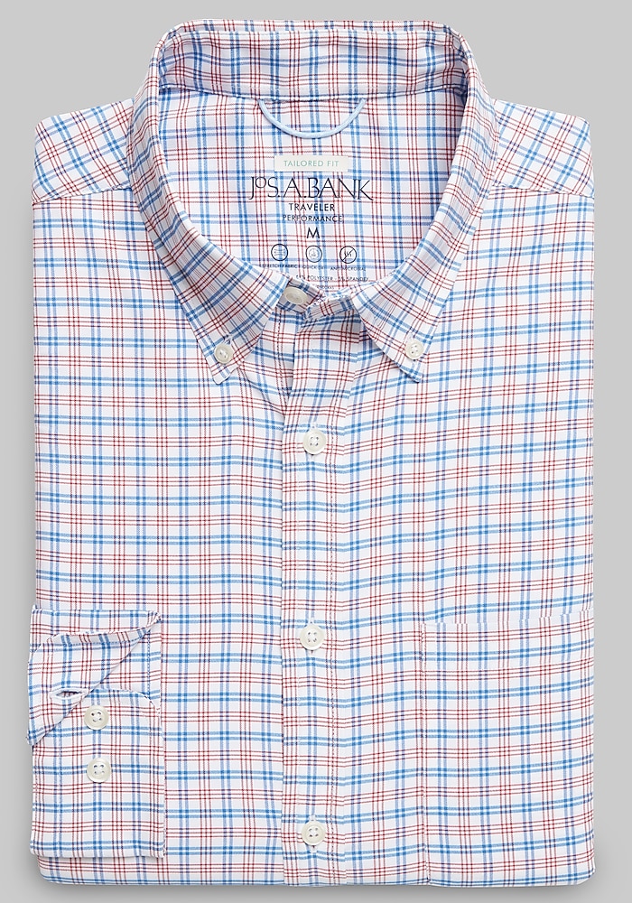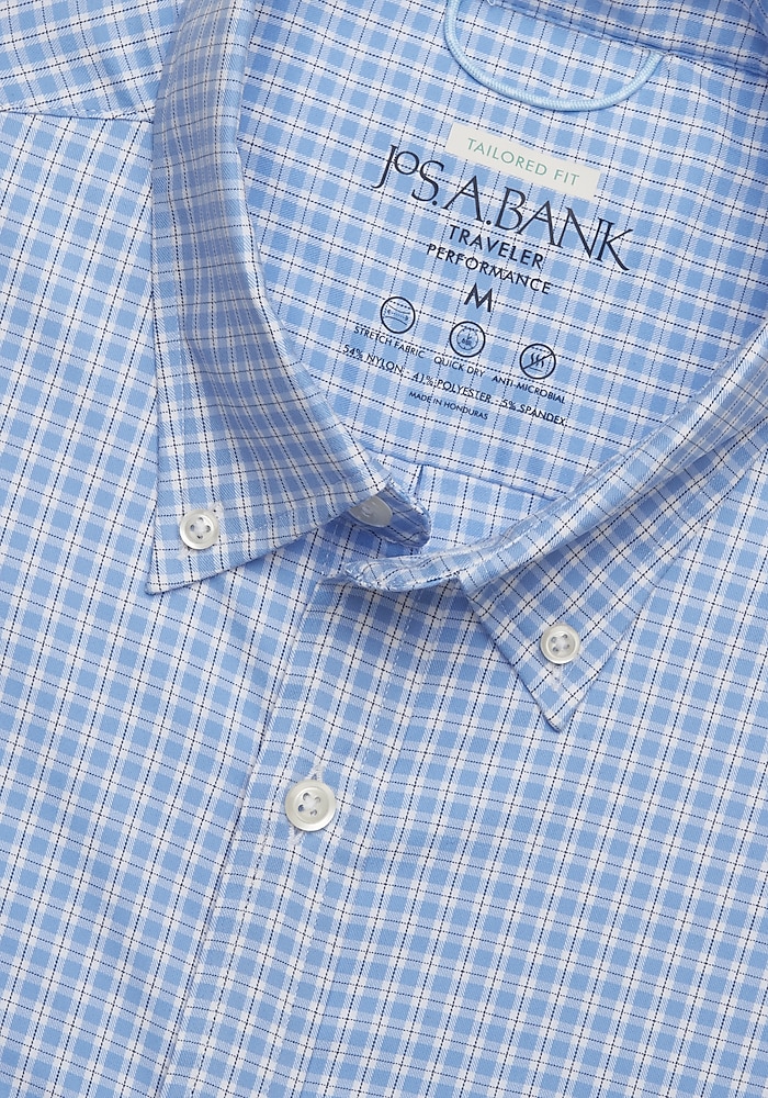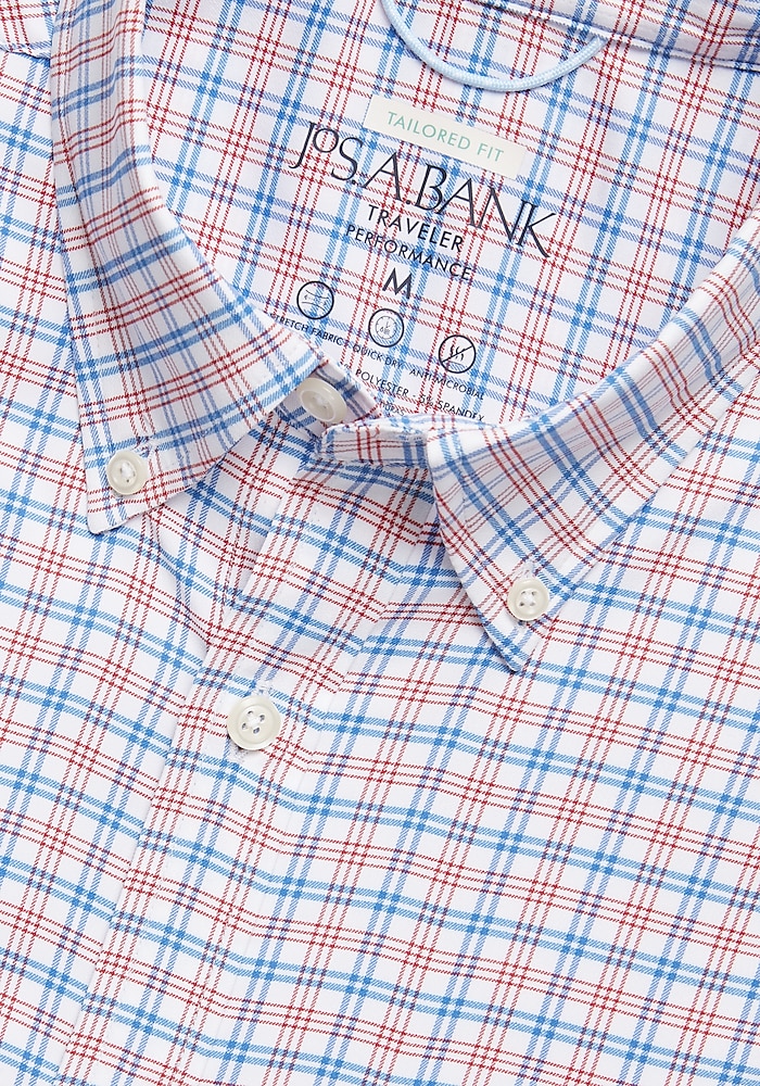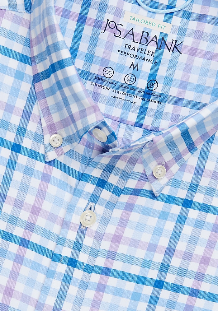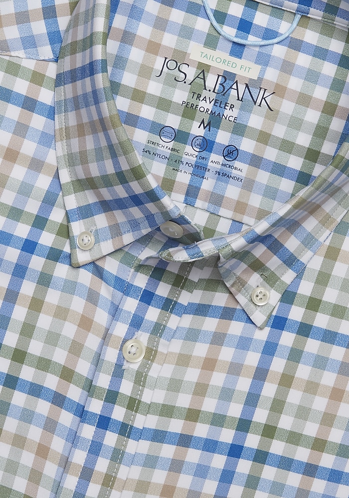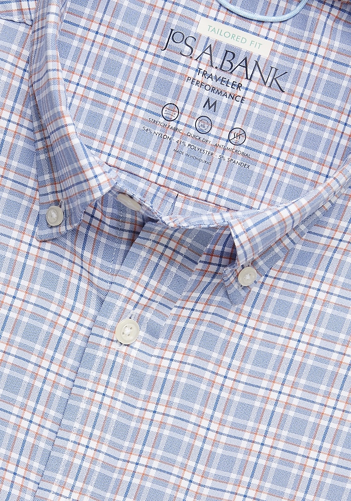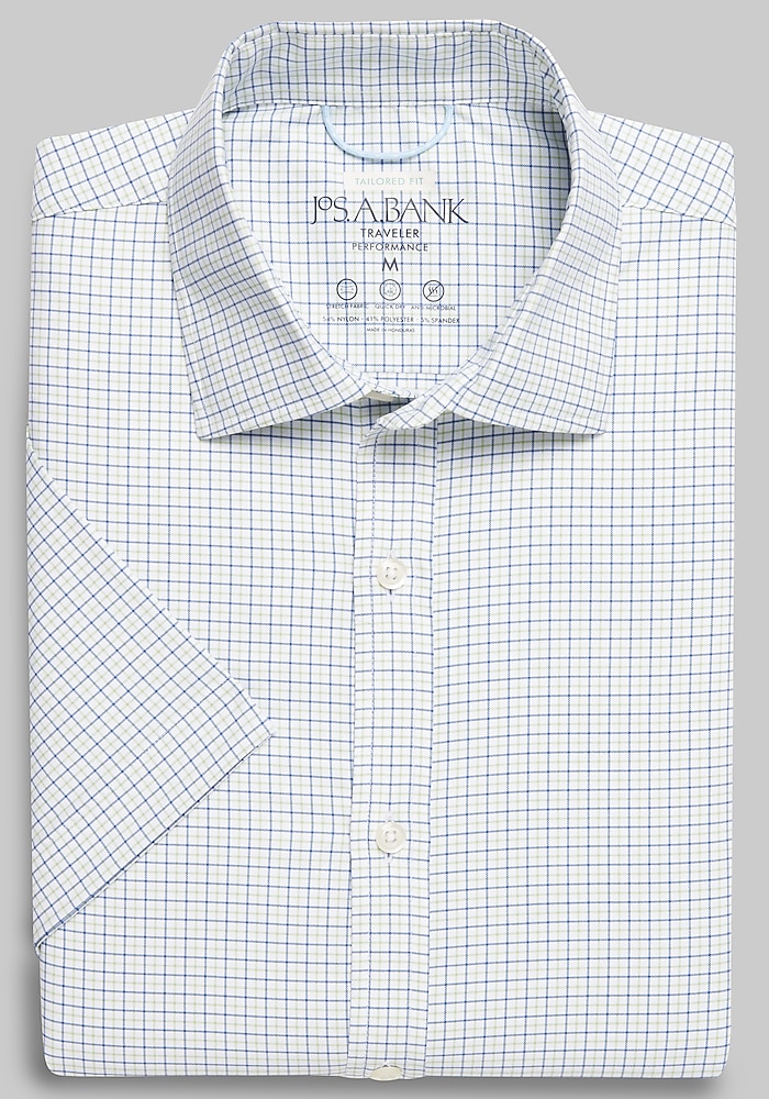 Traveler® Performance Tailored Fit Check Short-Sleeve Sportshirt – Big & Tall CLEARANCE#6BMV