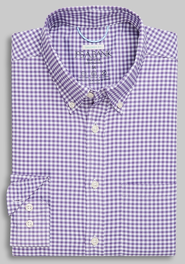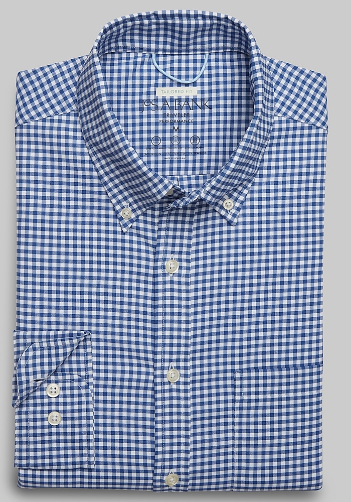 Traveler® Performance Tailored Fit Check 4 Way Stretch Long Sleeve Sportshirt CLEARANCE#6BNN