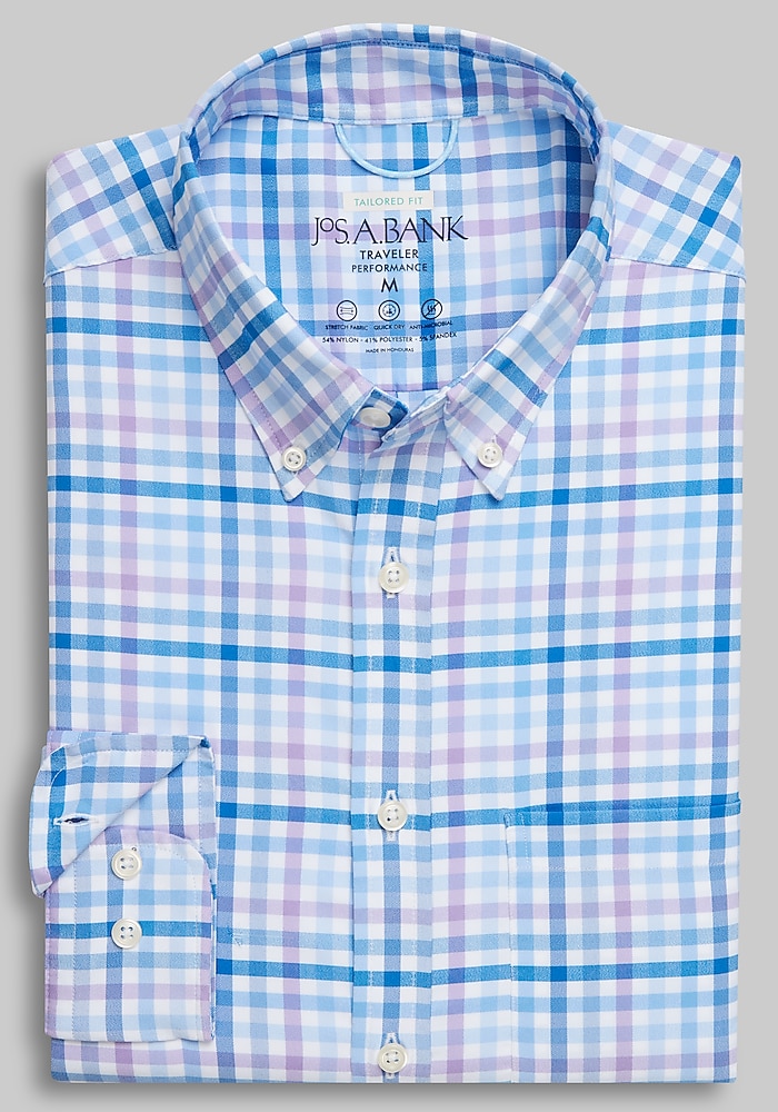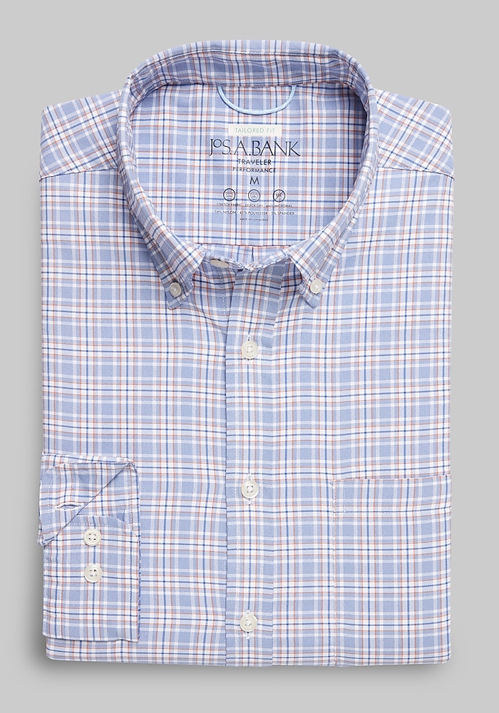 Traveler® Performance Tailored Fit Plaid 4 Way Stretch Long Sleeve Sportshirt CLEARANCE#6B7A