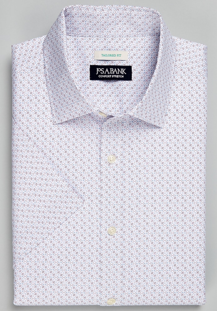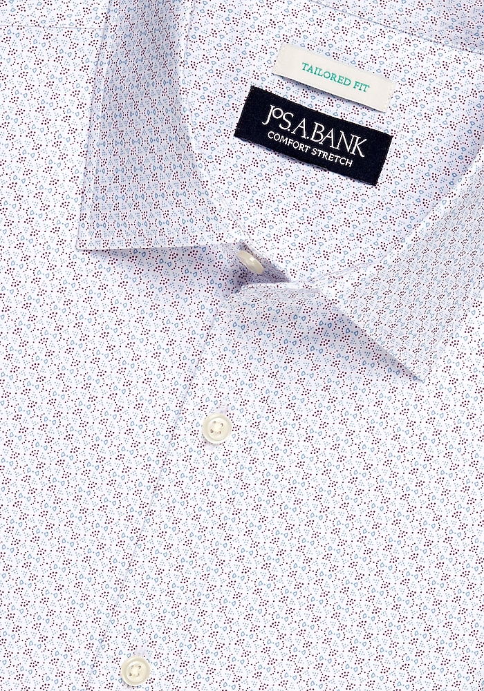 Jos. A. Bank Tailored Fit Bow Tie Dot Short Sleeve Sportshirt – Big & Tall CLEARANCE#6EBM