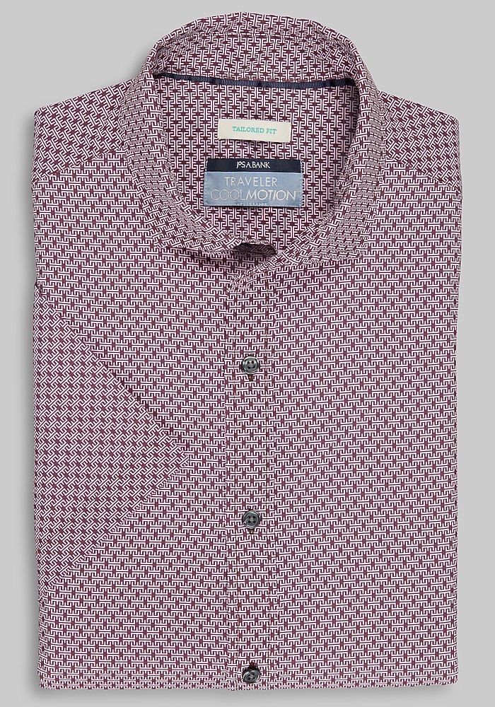 Traveler® Collection Tailored Fit Diamond 4-Way Stretch Short Sleeve Sportshirt CLEARANCE#6RUM