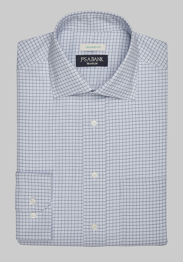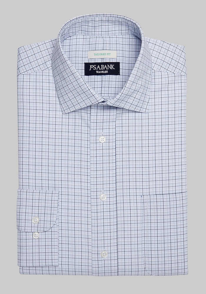 Traveler® Collection Tailored Fit Spread Collar Multi Check Dress Shirt CLEARANCE#51B5