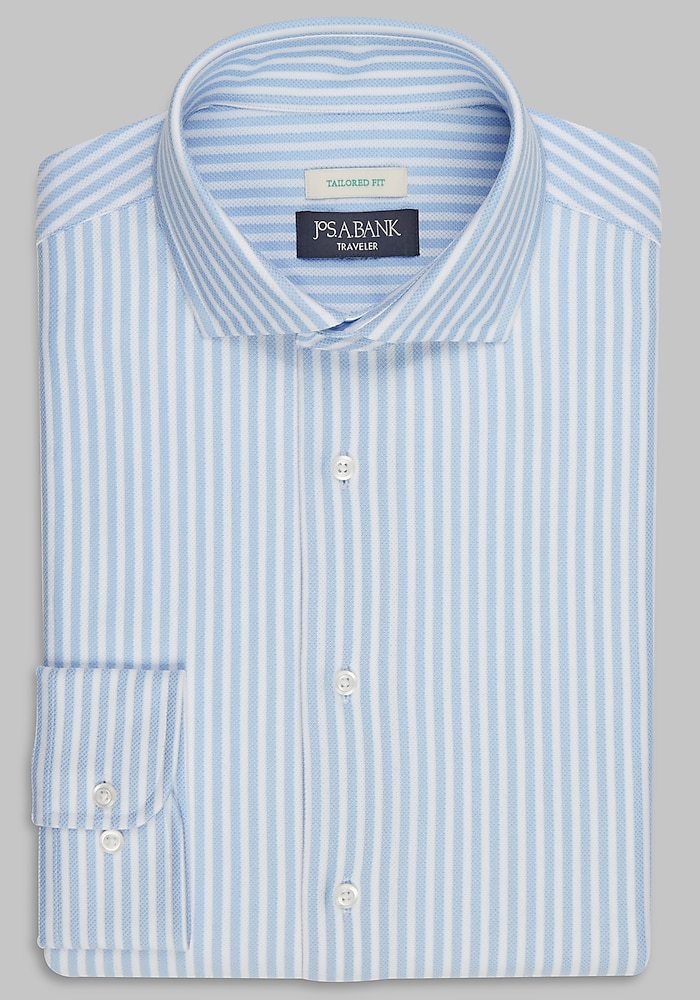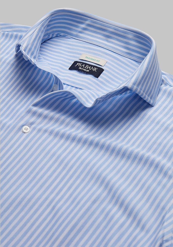 Traveler® COOLMOTIONTailored Fit Spread Collar Stripe Knit Dress Shirt#50BU
