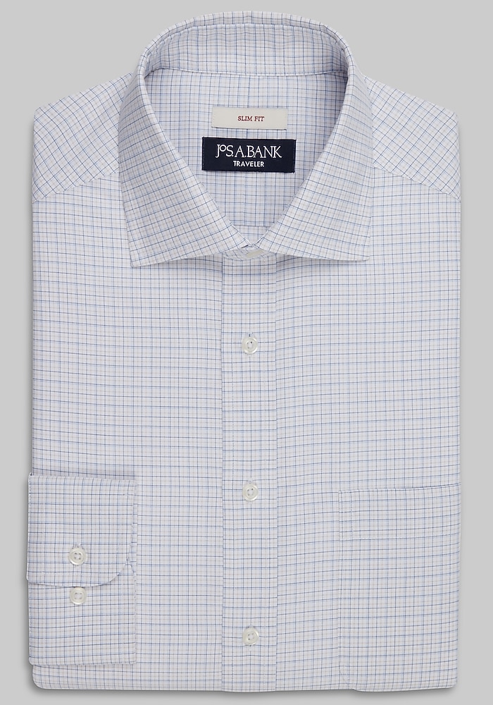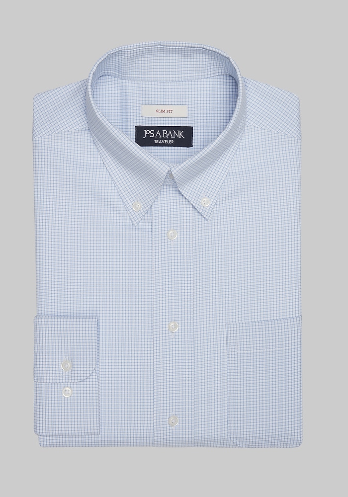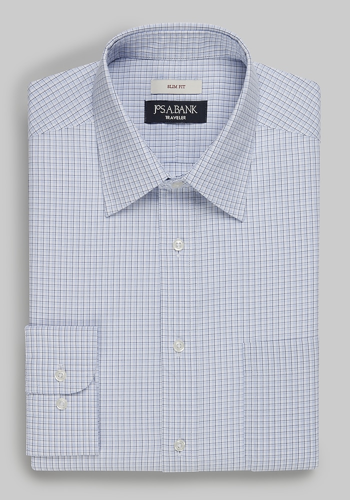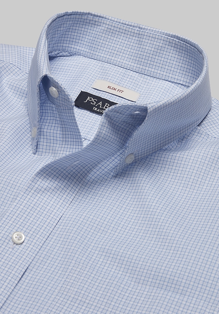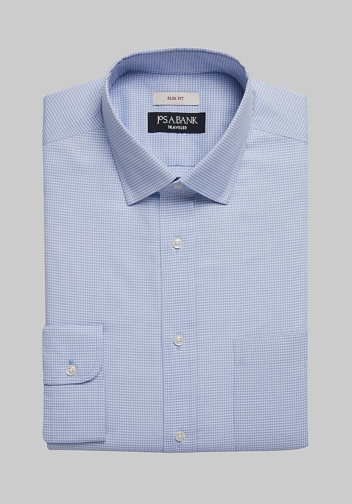Traveler® Collection Slim Fit Spread Collar Small Plaid Dress Shirt#5B3J