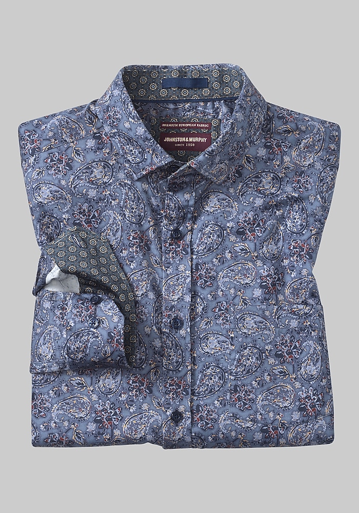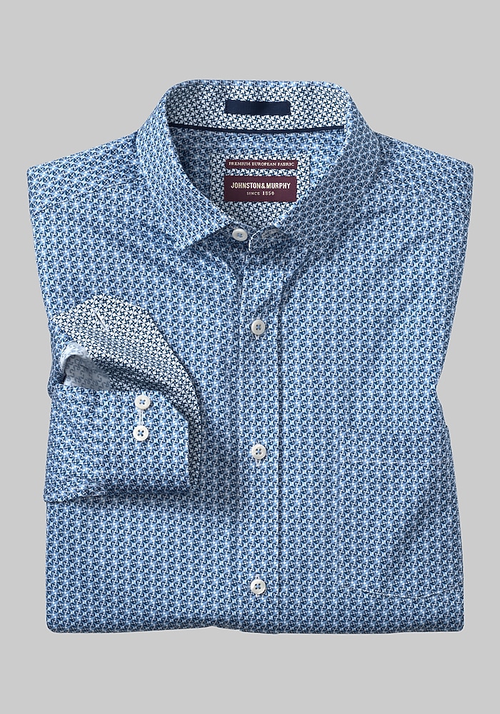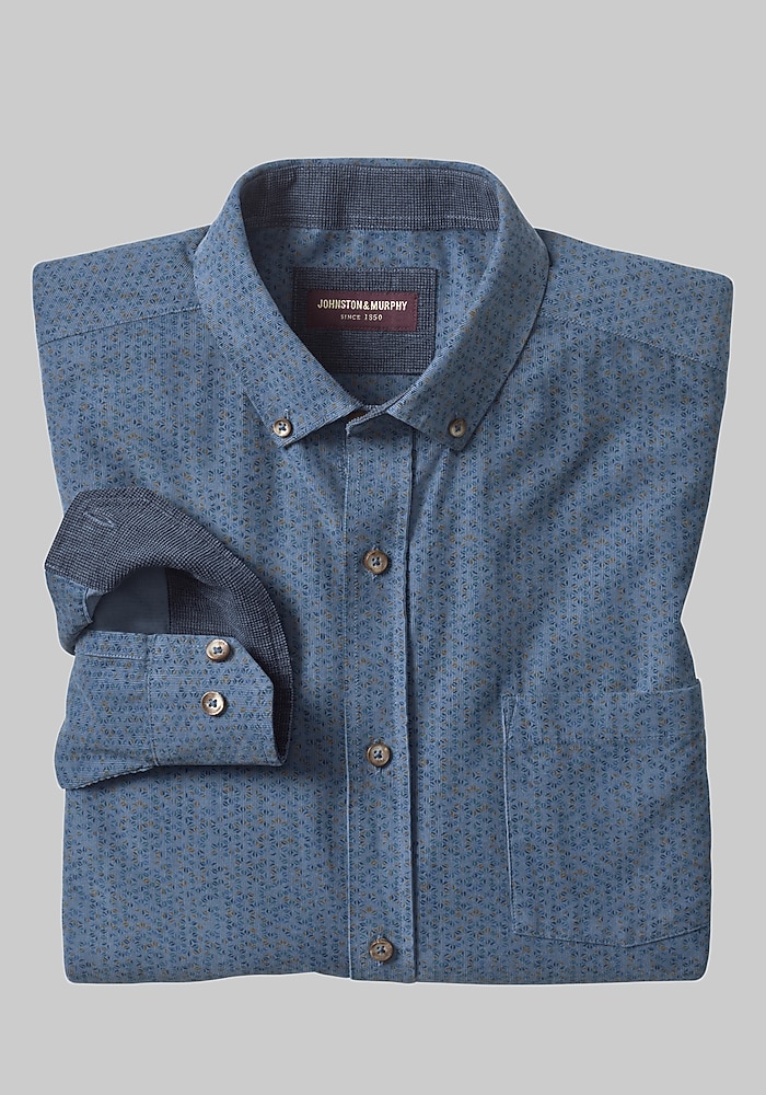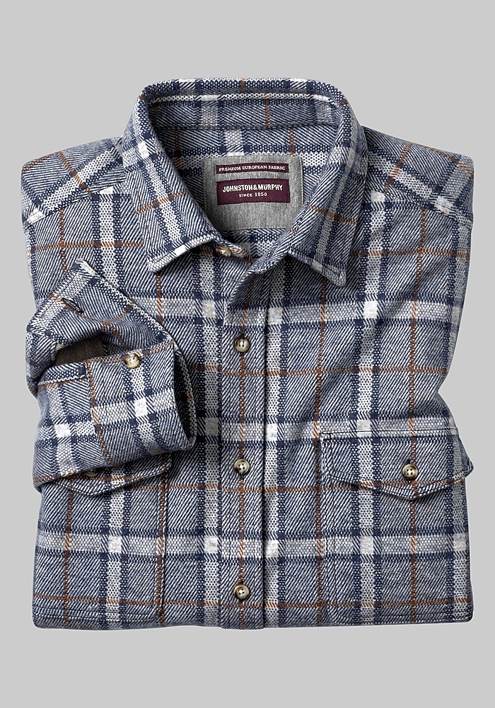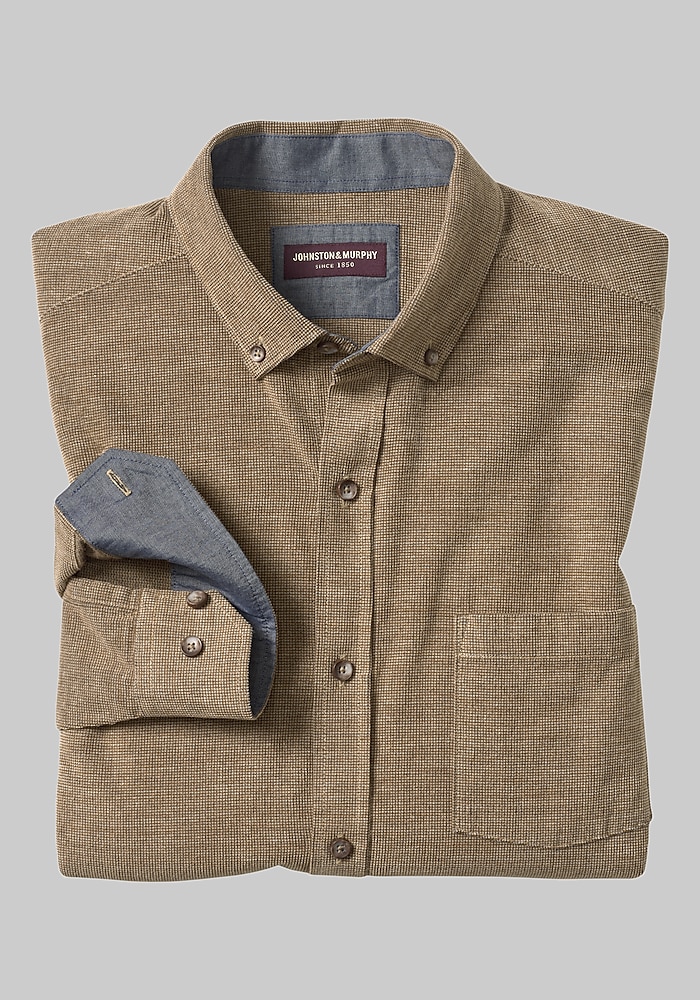 Johnston & Murphy Tailored Fit Brushed Button-Front Knit Shirt#66DT