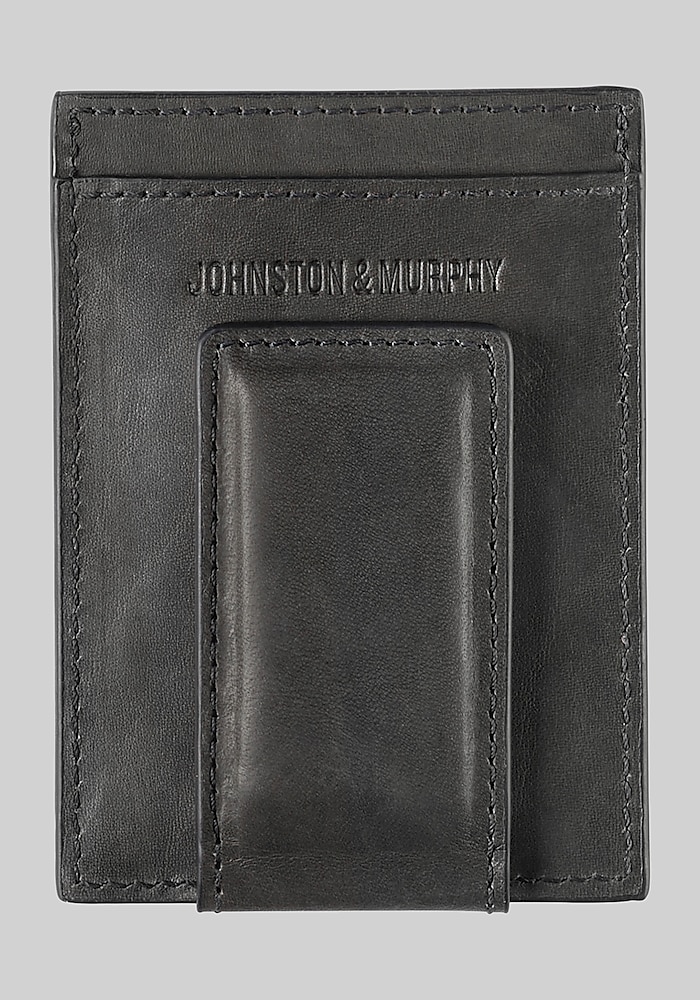 Product description Crafted from rich leather, the Johnston & Murphy wallet is a minimalist essential. Designed to hold just what you need, it features a slim profile with an easy-access front pocket and interior card slots along with a magnetic money clip. Multiple card slots Magnetic money clip Full-grain leather Imported