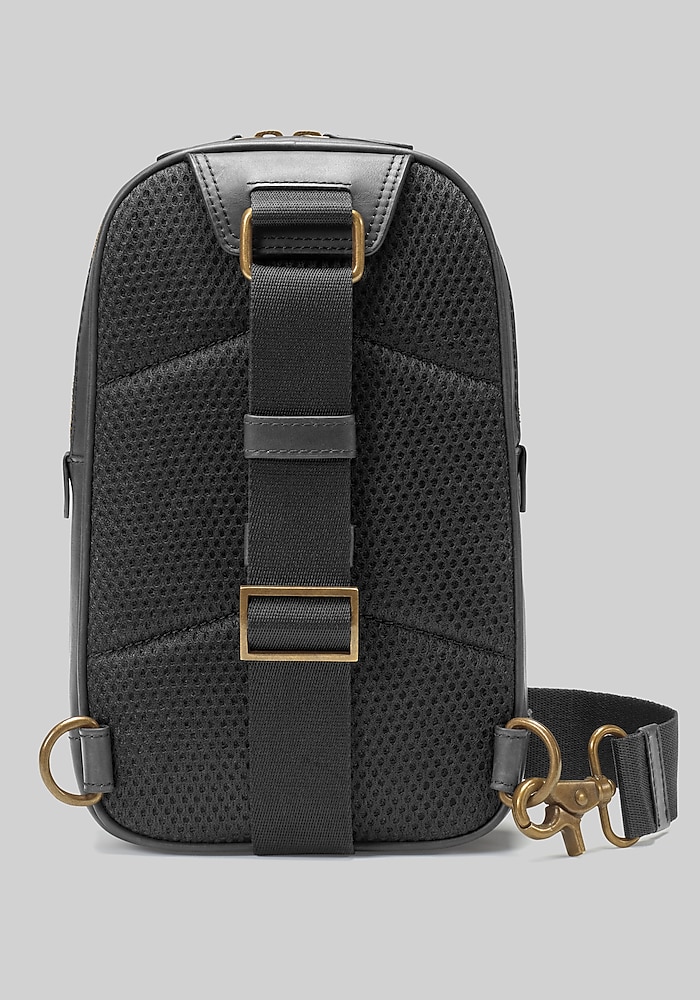 Product description From Johnston & Murphy, this sling bag offers both style and exceptional organization. Crafted from rich full-grain leather, it features two convenient front zip pockets and multiple interior pockets for easy access to your essentials. Complete with a detachable, adjustable shoulder strap on a slider and antiqued brass hardware, it’s designed for comfortable wear and sophisticated utility. Adjustable straps Washed cotton lining Full-grain leather Imported