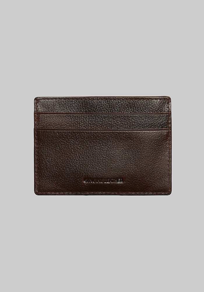 Product description Conveniently keep your credit cards, ID card, and more in this sleek and stylish card case. From Jos. A. Bank, it is made with genuine pebbled leather and features a pull tab for easy access while on the go. Genuine leather Imported