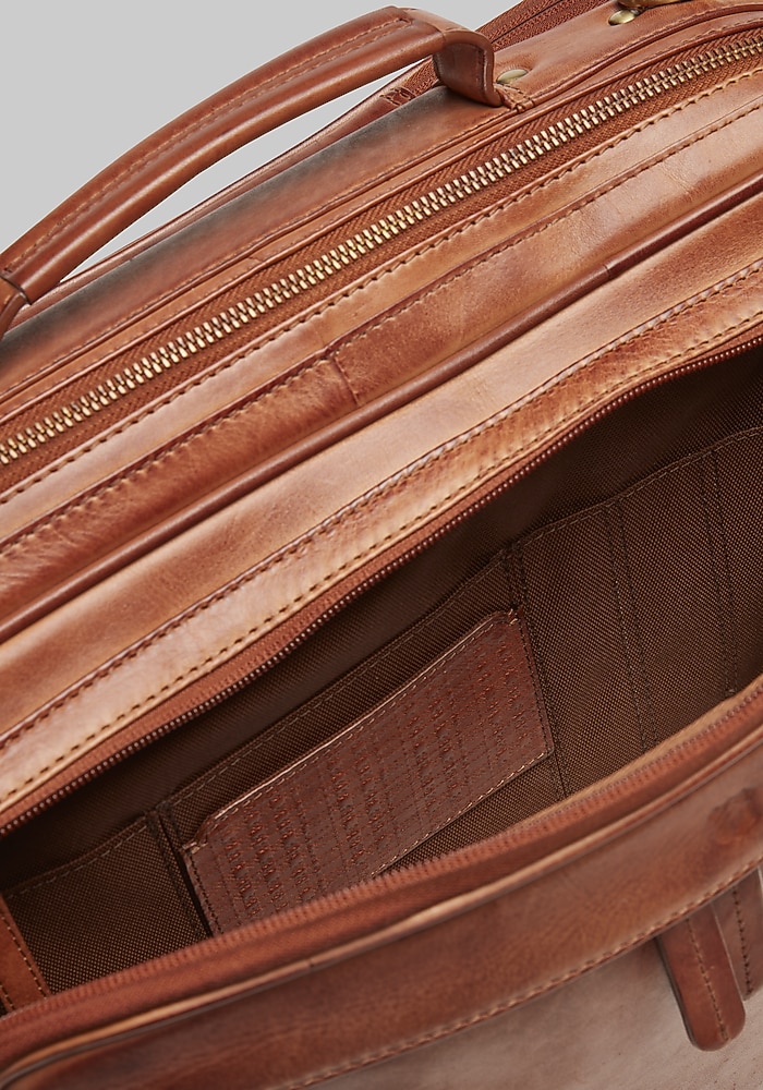 Product description Whether for school, work, or travel, this convertible briefcase backpack has got your back in classic fashion and practical style. Crafted from sumptuous leather, the multitude of zippered compartments offer optimal organization while the top handle, backpack straps, and adjustable, detachable shoulder strap all provide plenty of ways to carry your most pertinent needs. Zip closures Top handle, removable shoulder strap, and backpack straps Multiple outer and inner compartments Convertible briefcase to backpack design Gold-tone hardware Genuine leather Imported