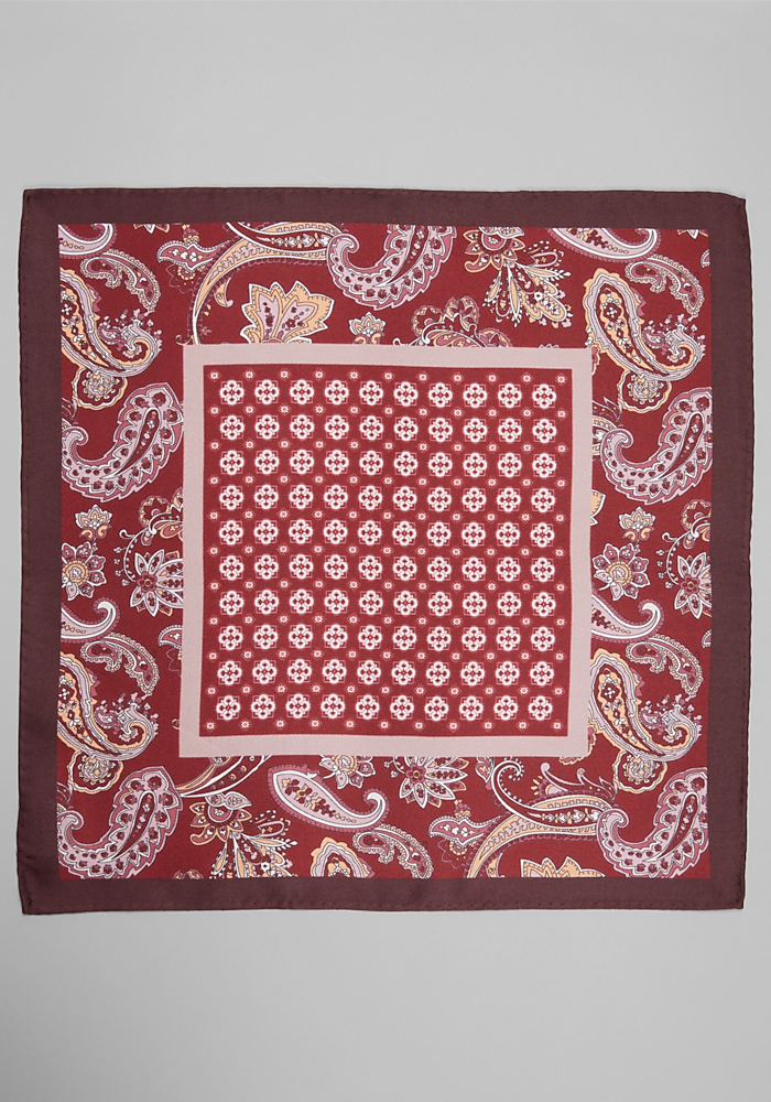 Product description A refined classic for your wardrobe, this silk pocket square features a sophisticated paisley medallion pattern. The intricate fusion of two timeless motifs and the luxurious feel of the silk add a striking touch to your look. 13-inch square 100% silk Dry clean only Imported