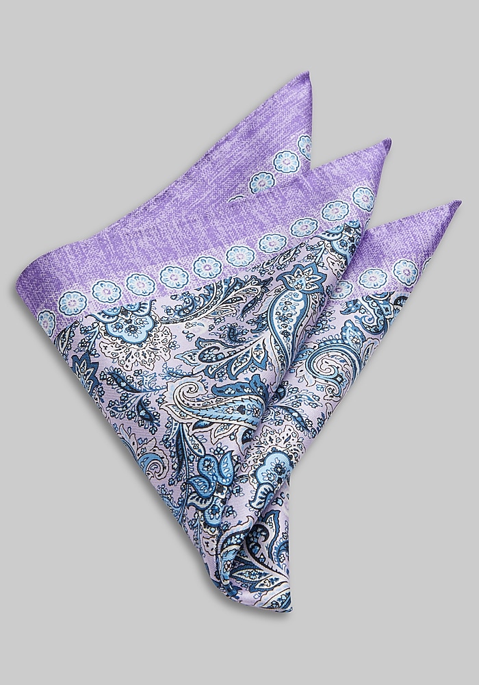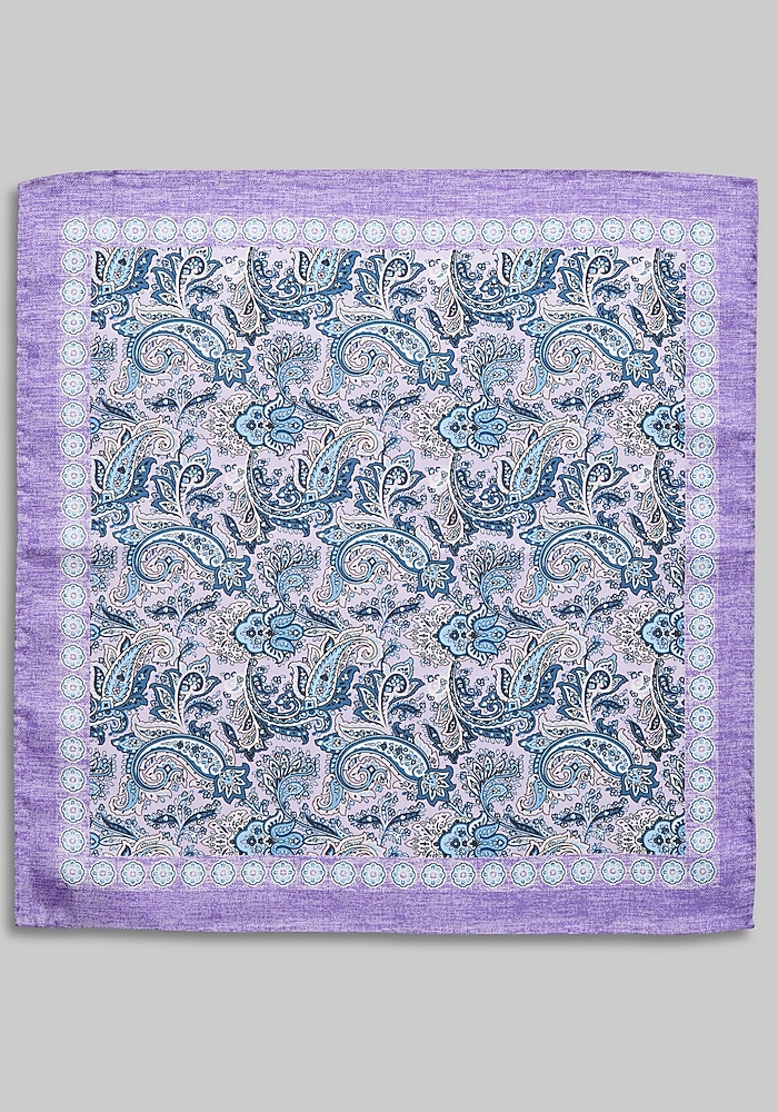 Product description Complete your look with this pocket square, designed in an intriguing color palette. The intricate paisley pattern adds a touch of personality to your suit or blazer, while the smooth silk fabric exudes sophistication. Perfect for weddings, special occasions, or elevating your everyday style. 13 1/2-inch square 100% silk Dry clean only Imported