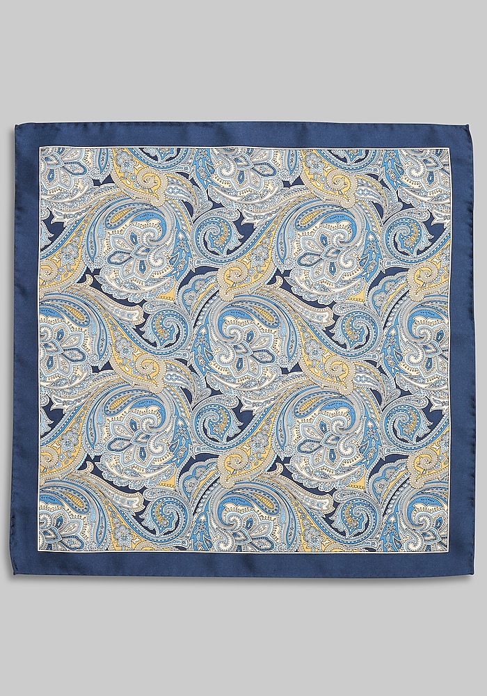 Product description Complete your look with this pocket square, designed in an eye-catching palette. The intricate paisley pattern adds a touch of personality to your suit or blazer, while the smooth silk fabric exudes sophistication. Perfect for weddings, special occasions, or elevating your everyday style. 13 1/2-inch square 100% silk Dry clean only Imported