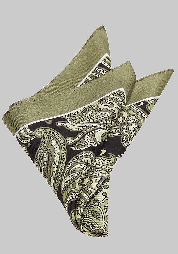 Product description Create an lively look with this popping paisley pocket square. Revamping a timeless trend and pattern, this pure silk accessory by Jos. A. Bank is sure to give you and your ensemble a new attitude. 13-inch square 100% silk Dry clean only Imported