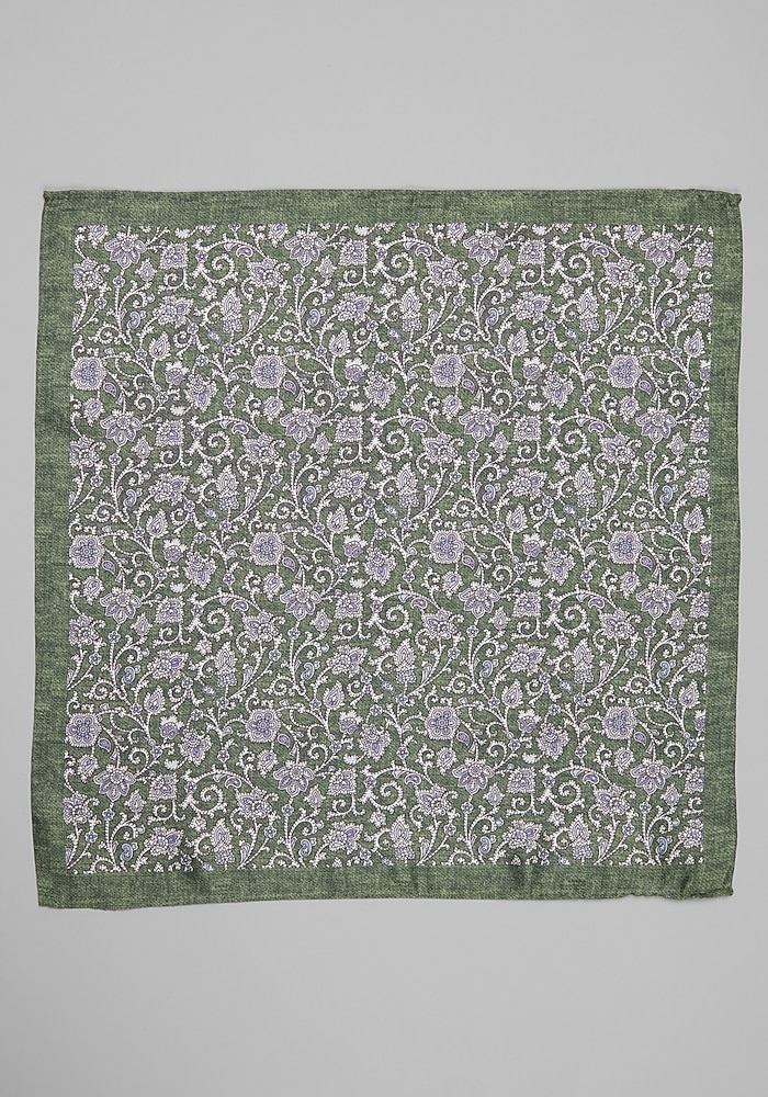 Product description A timeless classic with a hint of nature, this silk pocket square features a subtle floral pattern in muted shades. The understated motif and luxurious feel of the silk add a refined, elegant finish to your look. It’s the perfect way to infuse your style with a touch of quiet sophistication. 13-inch square 100% silk Dry clean only Imported