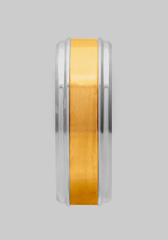 Product description Stainless steel is a popular choice for rings thanks to its durability (and affordability). In addition, it’s lightweight, scratch-resistant, and hypoallergenic. Designed with a comfort fit, this band features a gold-tone center detail for two-tone versatility. ROUND-EDGE STAINLESS STEEL COMFORT FIT BAND WITH YELLOW-PVD CENTER 8MM COO IMPORTED