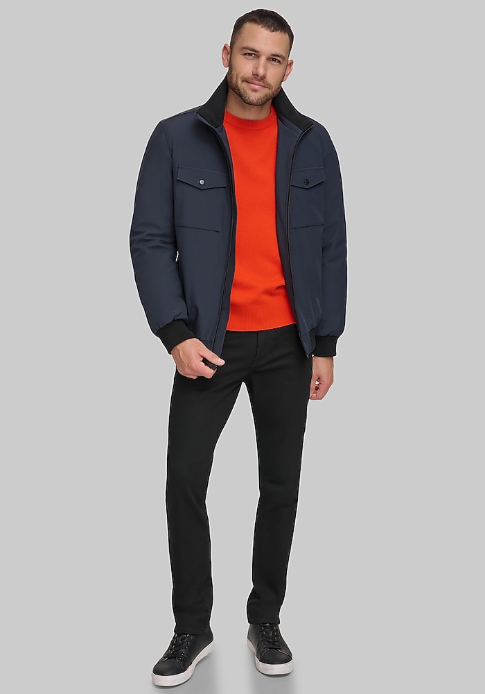 Product description A modern interpretation of a timeless classic, the Calvin Klein FlexTech Bomber Jacket offers sleek style fused with dynamic comfort. Crafted with innovative FlexTech fabric, it provides exceptional stretch and ease of movement for all-day wear. This jacket features the iconic bomber silhouette with a contemporary edge, making it a versatile and comfortable layering piece for elevating any casual or smart-casual look. Tailored Fit FlexTech construction 100% polyester Machine washable Imported