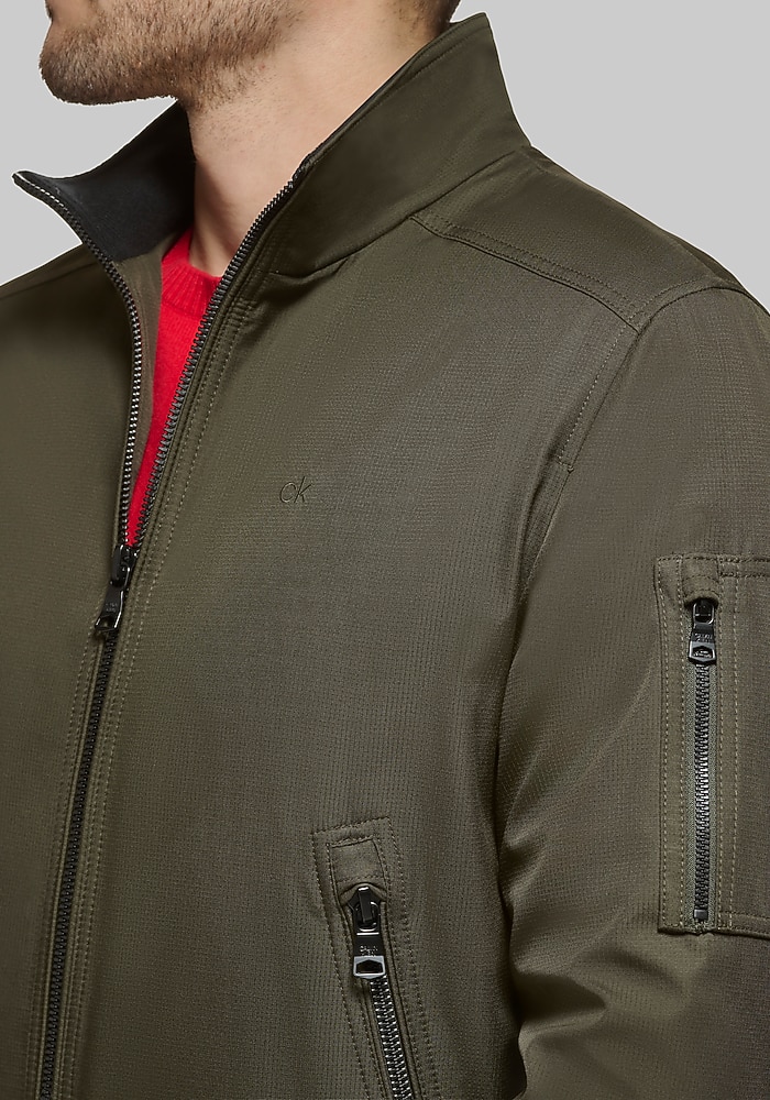Product description Designed with a Tailored Fit, this Calvin Klein bomber jacket brings a polished edge to your outerwear rotation. The durable ripstop fabric resists wear and tear, while streamlined details add timeless appeal. It’s a versatile layer that moves easily from day to night. Tailored Fit 100% polyester Machine washable Imported