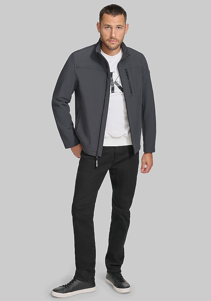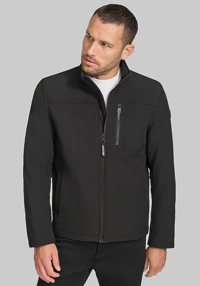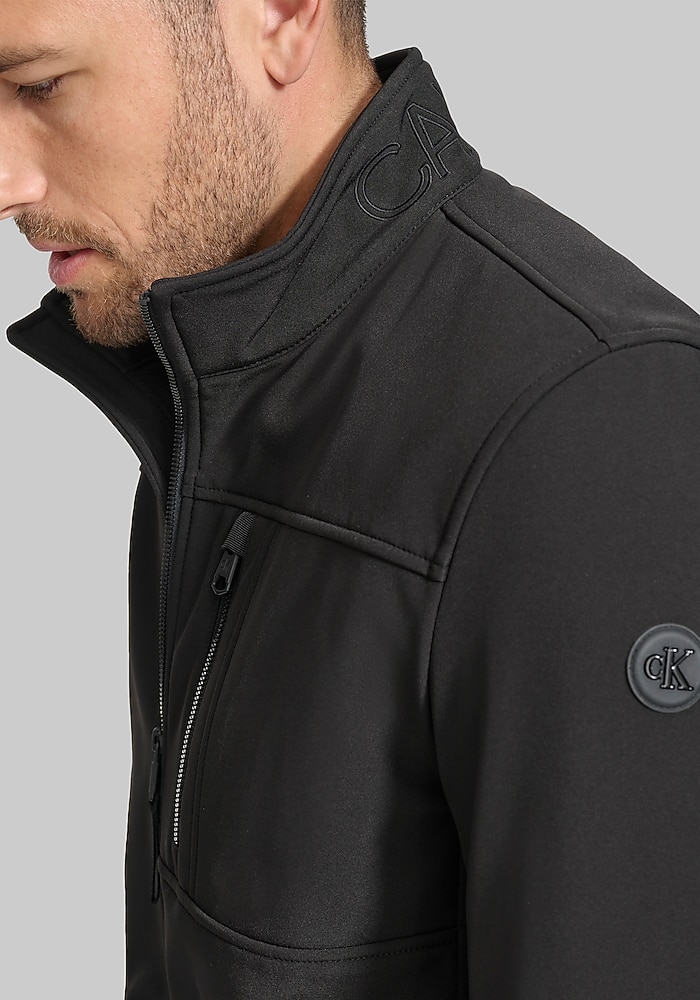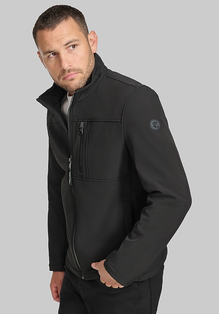 Product description Clean lines and a Tailored Fit give this Calvin Klein soft shell jacket a modern, elevated look. Lightweight yet protective, it’s designed to block wind and resist water perfect for transitional weather. A smart outer layer that pairs effortlessly with casual or business-casual outfits. Tailored Fit 100% polyester Machine washable Imported