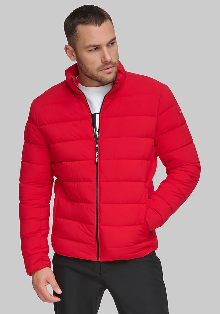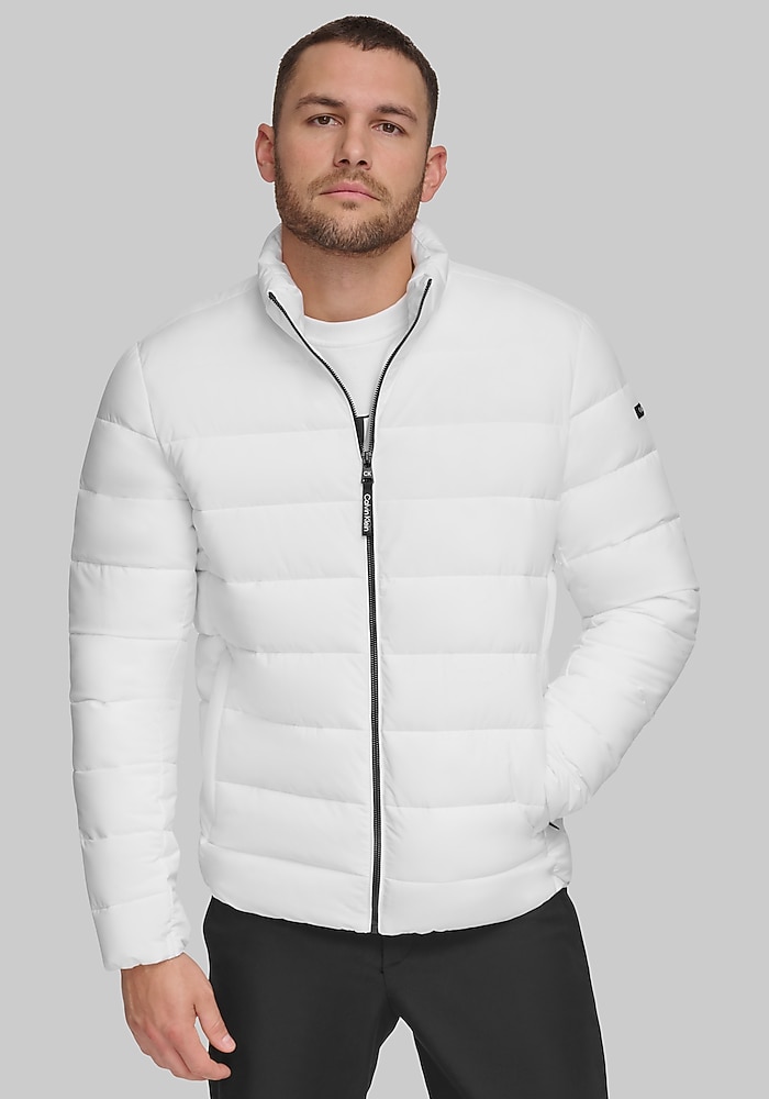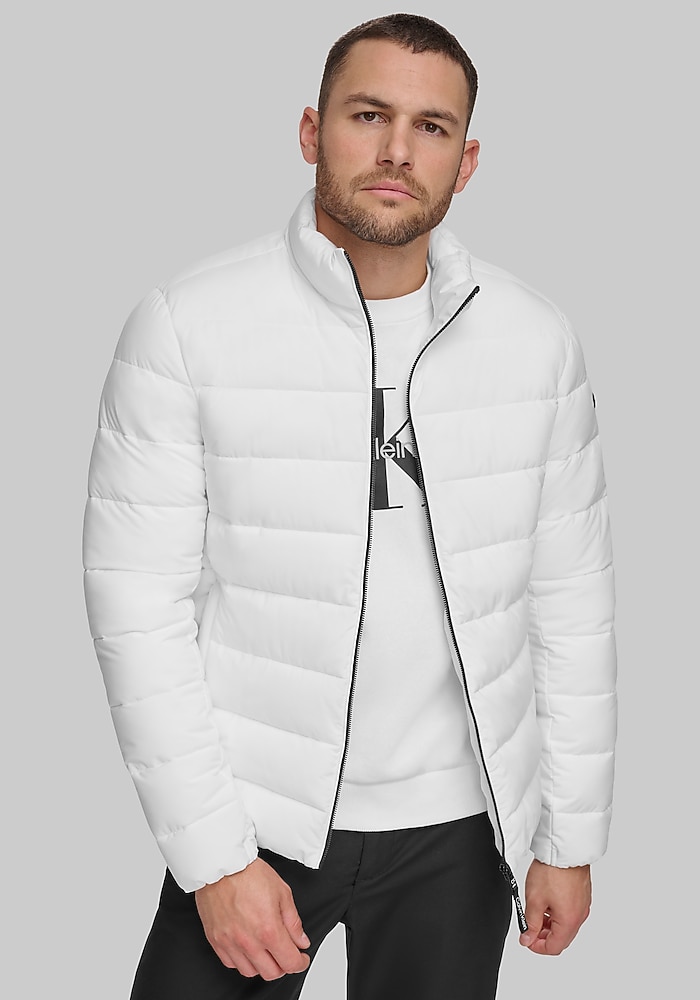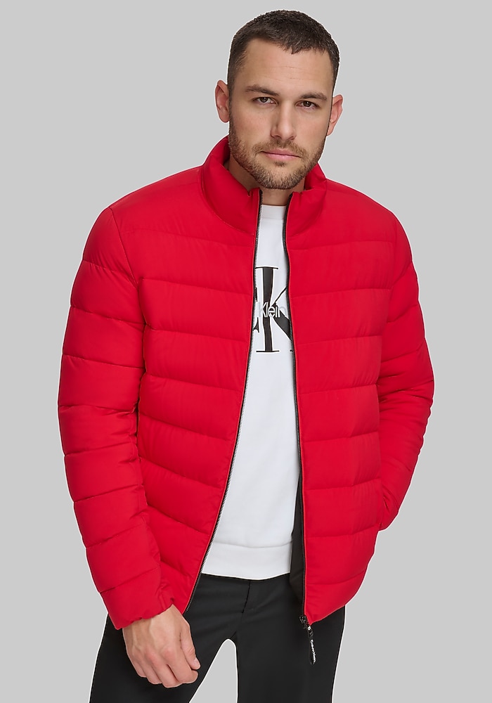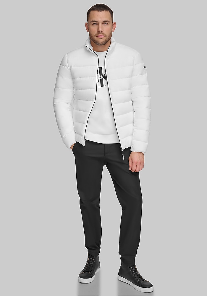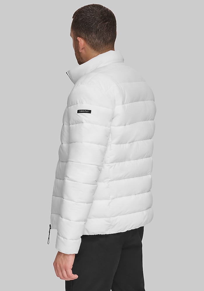 Product description Designed for warmth without the bulk, this Calvin Klein puffer jacket combines lightweight insulation with a flexible fit. Its quilted design and modern silhouette offer everyday versatility, while the stretch fabric moves with you for all-day comfort. A smart choice for cold-weather style. Tailored Fit 100% polyester Machine washable Imported