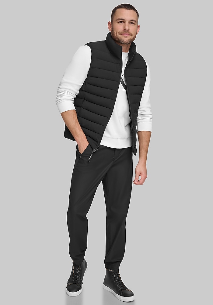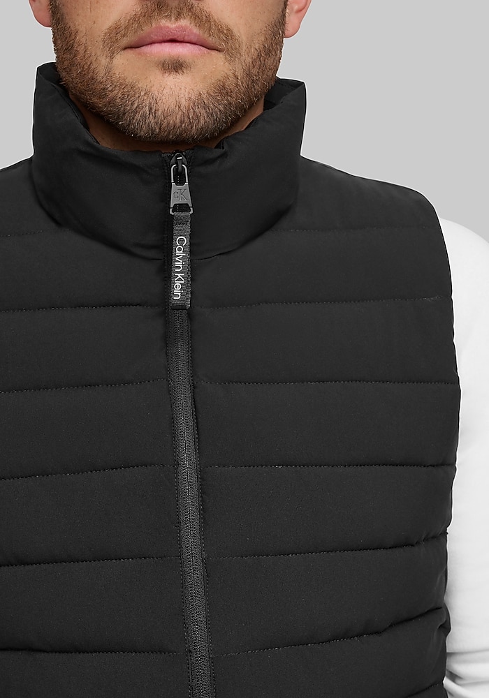 Product description Trim and modern, this Calvin Klein puffer vest delivers lightweight warmth in a Tailored Fit. Made with stretch fabric for ease of movement, it features a zip-front closure, making it a smart layering piece for transitional weather. Tailored Fit 100% polyester Machine washable Imported
