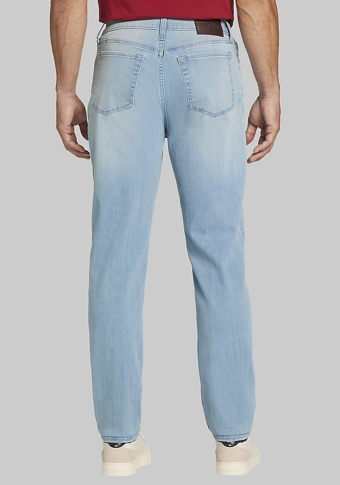 Product description These jeans by Jos. A. Bank aren’t just about comfort and style, they’re about a cleaner conscience. Woven with just the right amount of stretch, they offer total flexibility and freedom of movement, perfect for your on-the-go lifestyle. The best part? They’re crafted with a revolutionary process that uses substantially less water, chemicals, and energy compared to traditional denim production. Thanks to CleanKore dyeing, these eco-friendly jeans prove that looking good doesn’t have to cost the planet. The athletic fit offers a comfortable, roomier feel through the hips and thighs, while maintaining a clean silhouette. These jeans aren’t just about comfort and style, they’re about a cleaner conscience. Woven with just the right amount of stretch, they offer total flexibility and freedom of movement, perfect for your on-the-go lifestyle. The best part? they’re crafted with a revolutionary process that uses substantially less water, chemicals, and energy compared to traditional denim production. Thanks to CleanKore dyeing, these eco-friendly jeans prove that looking good doesn’t have to cost the planet. The athletic fit offers a comfortable, roomier feel through the hips and thighs, while maintaining a clean silhouette. 91% COTTON 7% ELASTRELL 2% SPANDEX ATHLETIC FIT WOVEN WITH JUST THE RIGHT AMOUNT OF STRETCH FOR COMFORT SUBSTANTIAL REDUCTION OF WATER, CHEMICALS, AND ENERGY WITH CLEANKORE DYEING PROCESS, DENIM CAN NOW BE ECO-FRIENDLY & SUSTAINABL