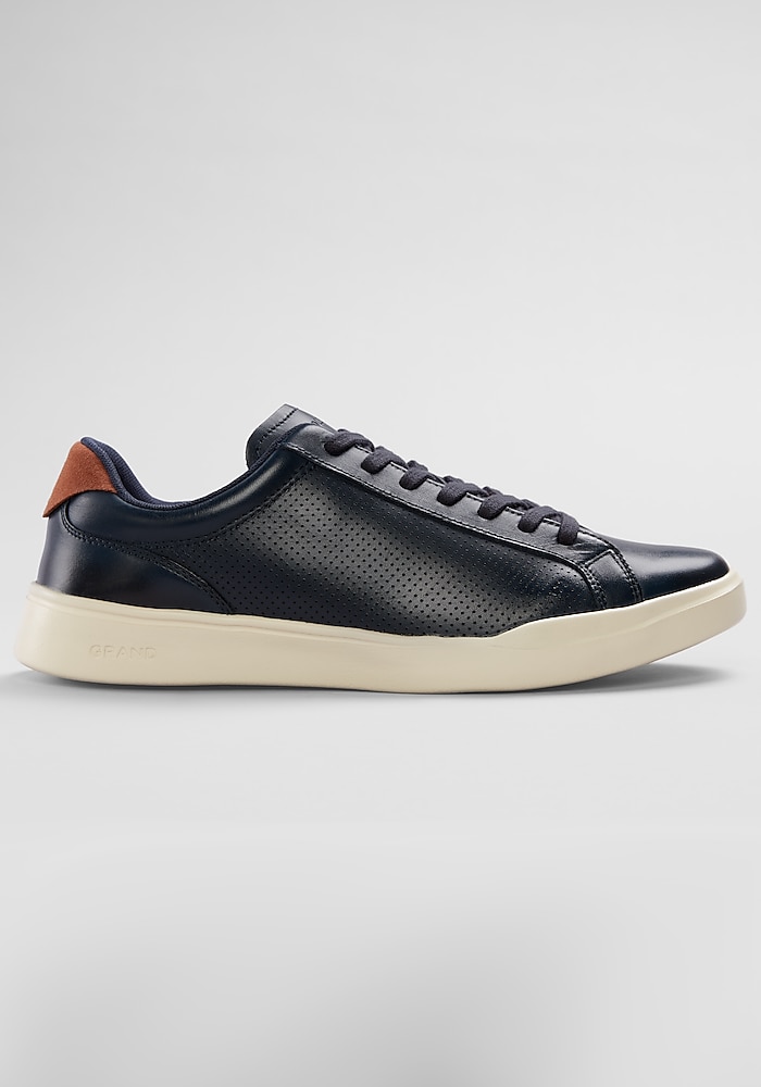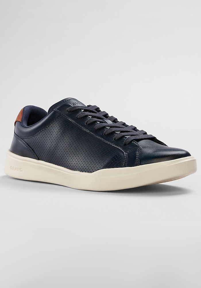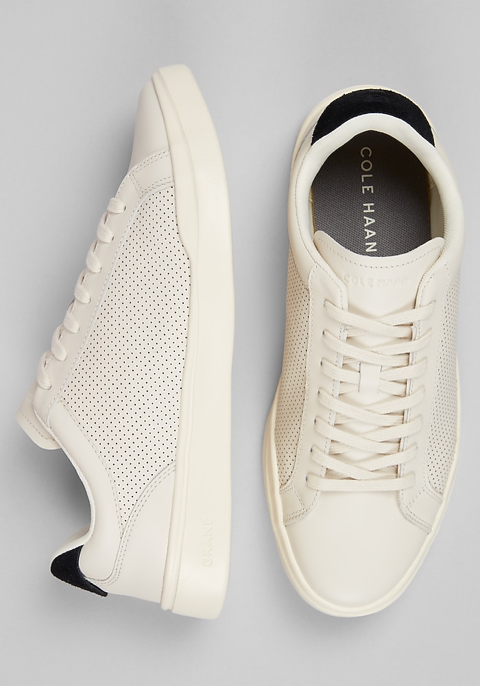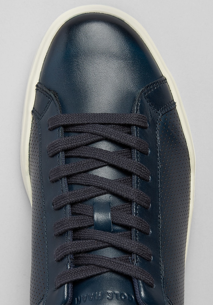 Product description A stylish fusion of athletic comfort and refined design, this Cole Haan sneaker offers exceptional versatility. Its modern perforated details enhance breathability and visual appeal, while the LTT (lace-to-toe) lacing system ensures a customizable fit. Engineered with Grand-series cushioning, it provides all-day comfort, making it a perfect choice for elevated casual looks. FABRIC COVERED PADDED FOOTBED DURABLE RUBBER CUPSOLE