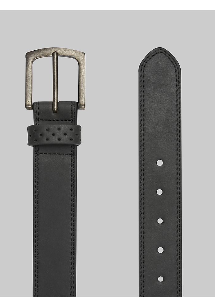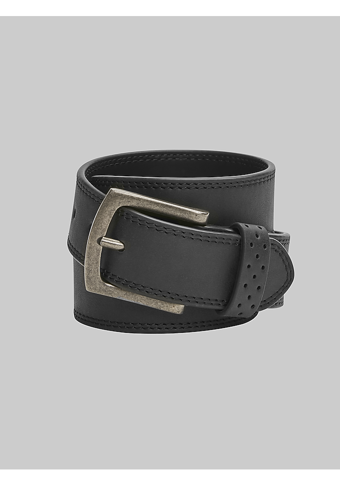 Product description Elevate your everyday edge with a belt that knows how to make an impression. Double-stitched for durability, perforated for a touch of unexpected style, this leather masterpiece is ready to take on any adventure, from backyard barbecues to cross-country road trips. Elevate your everyday edge with a belt that knows how to make an impression. Double-stitched for durability, perforated for a touch of unexpected style, this leather masterpiece is ready to take on any adventure, from backyard barbecues to cross-country road trips. GENUINE LEATHER 40MM ANTIQUE FINISH SILVER BUCKLE PERFORATED KEEPER DOUBLE STITCHED EDGE COO IMPORTED