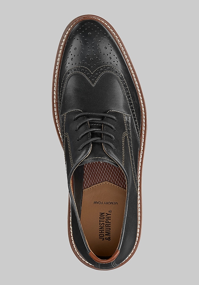 Product description Incredibly lightweight and flexible, these wingtip Oxfords from Johnston & Murphy strike the perfect balance between dressy and casual. A removable, memory-foam cushioned insole and TRUEFOAM outsole keep you comfortably supported. Double-stitched leather welt. Antimicrobial leather lining. Full-grain leather uppers. Imported. FULL GRAIN LEATHER COO IMPORTED FLEXIBLE RUBBER OUTSOLE WITH TRUFOAM FOR LIGHTWEIGHT CUSHIONED COMFORT. LEATHER AND ANTI-MICROBIAL POLYMESH LINING 50% RECYCLED REMOVABLE, MOLDED FOOTBED WITH MEMORY FOAM.
