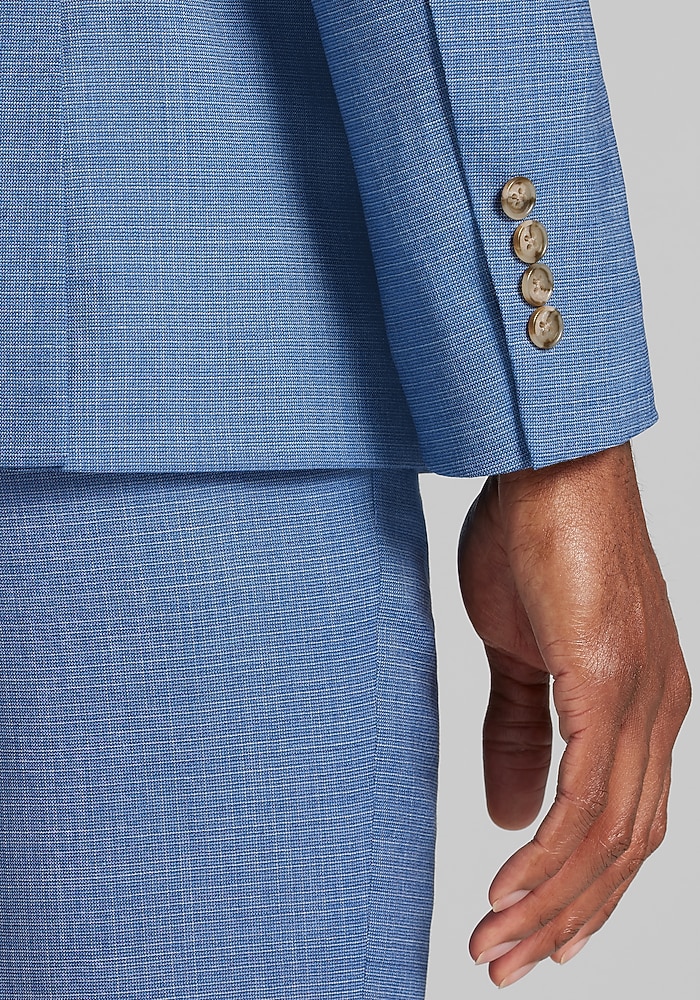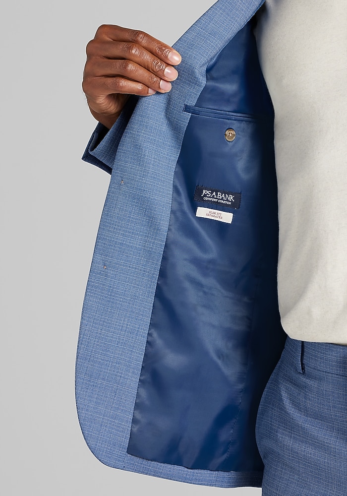 Product description Elevate your suit game with our suit separates collection that lets you choose your jacket, pant, and/or vest sizes individually for a custom fit without a trip to the tailor. This Slim Fit suit separates jacket is fashioned from a quality wool blend with stretch built-in for optimal comfort. TAILORED FIT JACKET, FULLY LINED, INTERIOR POCKETS JAB LABEL 66% WOOL 30% POLYESTER 4% SPANDEX NOTCH LAPEL