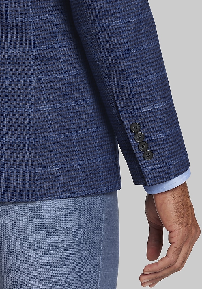 Product description This sportcoat offers a contemporary twist on the classic check pattern. Pair it with your favorite pieces to create a look that’s both timeless and undeniably modern. It’s a versatile piece that transitions seamlessly from a smart casual look with chinos to a more formal setting with dress slacks. This sportcoat offers a contemporary twist on the classic check pattern. Pair it with your favorite pieces to create a look that’s both timeless and undeniably modern. It’s a versatile piece that transitions seamlessly from a smart casual look with chinos to a more formal setting with dress slacks.37% polyester, 60% wool, 3% spandex. NOTCH LAPEL SOFT JACKET 2 BUTTON FLAP POCKETS TAILORED FIT