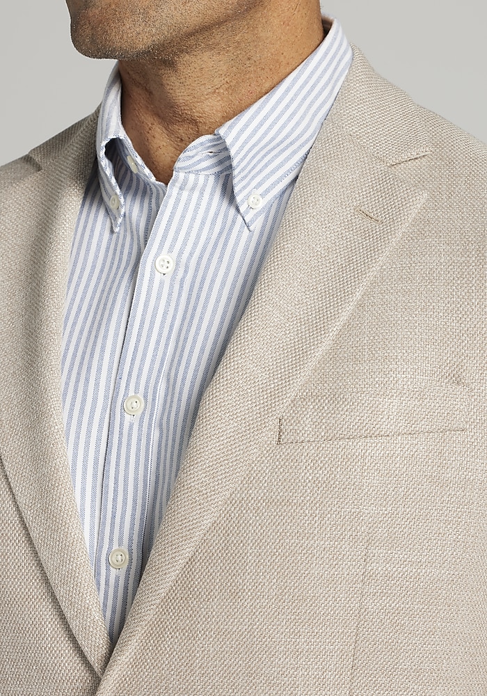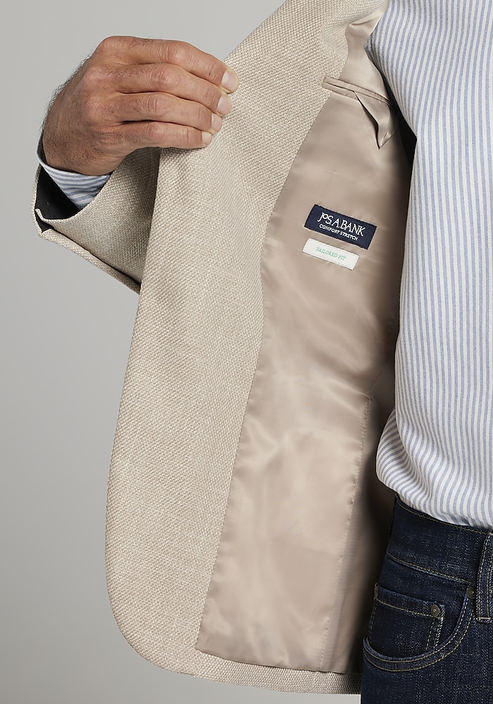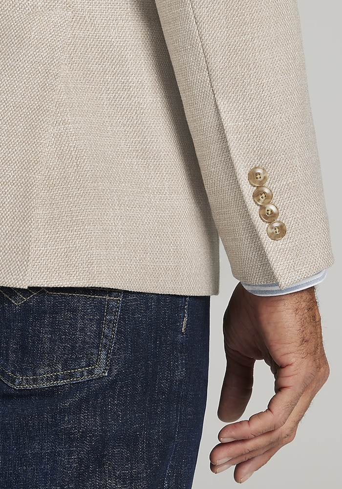 Product description In a versatile solid hue, this sportcoat brings together sophisticated style and effortless comfort. Crafted with a hint of stretch, it allows for easy movement while maintaining a sharp, Tailored Fit. The textured fabric adds depth and visual interest, making it perfect for elevating your look at the office, special events, or evenings out. It’s a must-have for a polished yet comfortable wardrobe. In a versatile solid hue, this sportcoat brings together sophisticated style and effortless comfort. Crafted with a hint of stretch, it allows for easy movement while maintaining a sharp, Tailored Fit. The textured fabric adds depth and visual interest, making it perfect for elevating your look at the office, special events, or evenings out. It’s a must-have for a polished yet comfortable wardrobe. NOTCH LAPEL FLAP POCKET BUTTERFLY LINED COMFORT STRETCH TWO BUTTON 51% VISCOSE 48% POLYESTER 1% ELASTANE