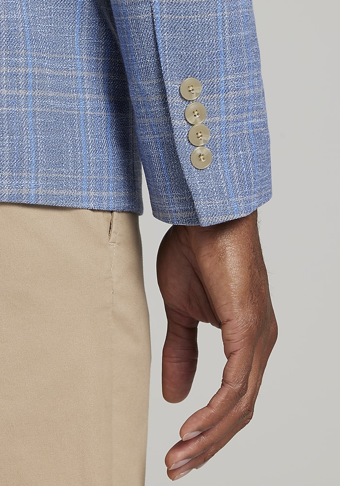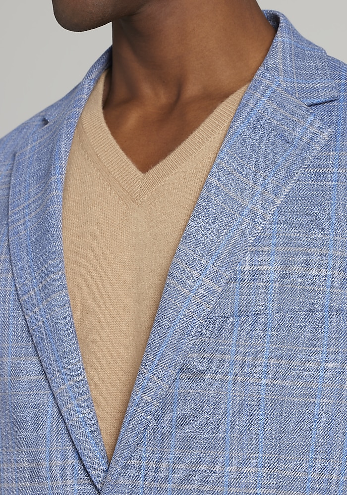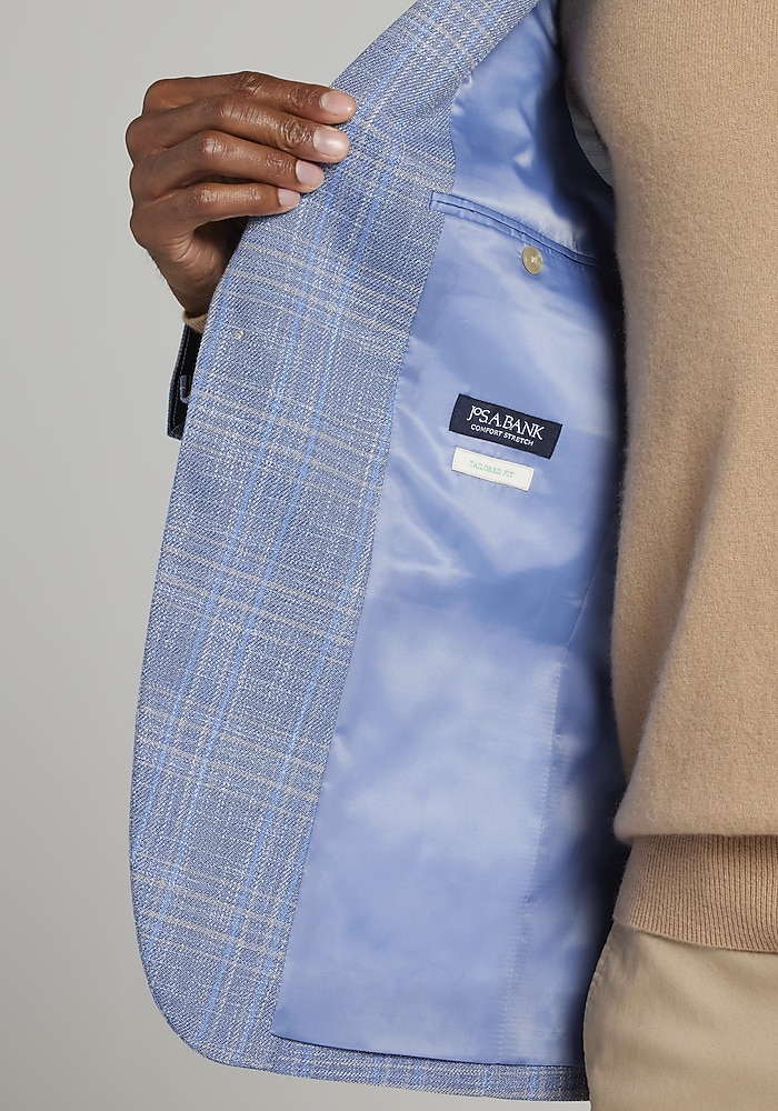 Product description The Jos. A. Bank Tailored Fit Plaid Comfort Fit Stretch Sportcoat embodies refined style and effortless comfort. Crafted from a high-quality stretch fabric, this sportcoat offers unparalleled flexibility and ease of movement. The classic two-button closure, flap pockets and notch lapel exude timeless style. Fully lined for added warmth and durability, this sportcoat is the perfect addition to any wardrobe. NOTCH LAPEL FLAP POCKET COMFORT STRETCH TWO BUTTON FULLY LINED DOUBLE VENT 77% POLYESTER 21% VISCOSE 2% ELASTANE