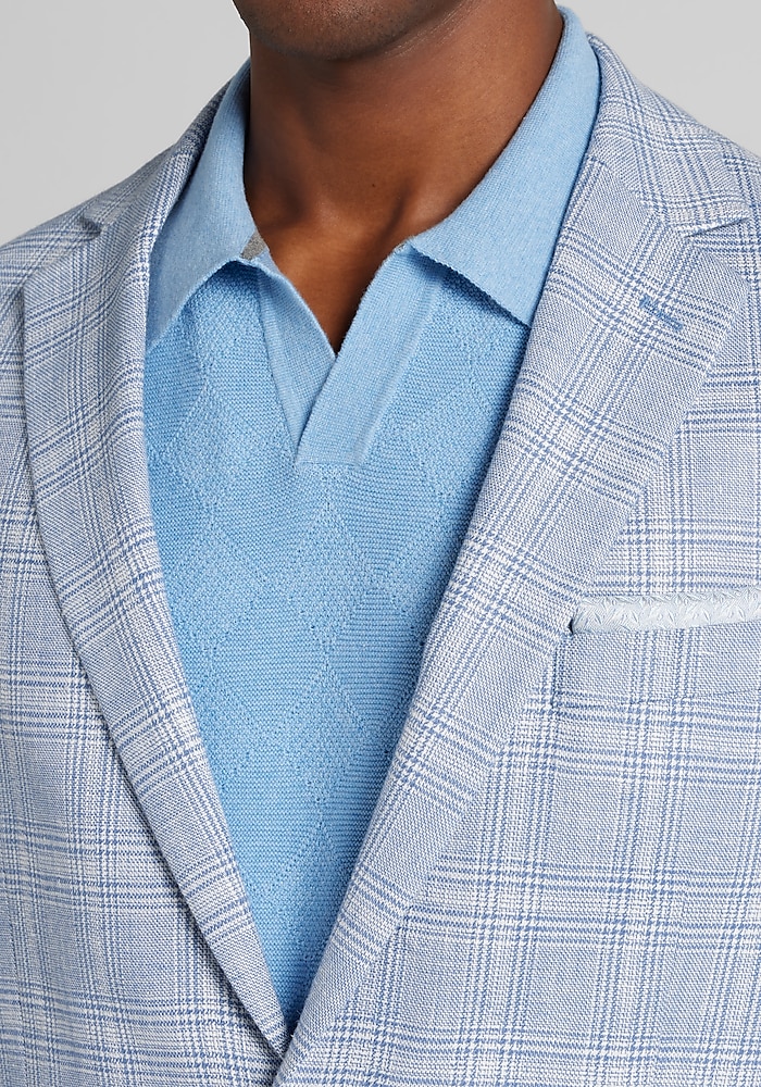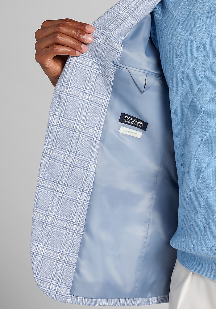 Product description Showcasing a special linen blend that is lightweight, breathable, and flexible, this sportcoat is designed for versatility and freedom of movement. Comprised of comfort stretch fabric, it pairs a notch lapel with a two-button closure and is cut with a Tailored Fit. From business trips to happy hours to weekend events, it is sure to keep you both looking and feeling cool. BT JAB TF 2BTN LT BLUE PLAID LINEN BLND SPORTCOAT NOTCH COLLAR FLAP POCKET TWO BUTTON BUTTERFLY LINED COMFORT STRETCH TAILORED FIT 53% LINEN 27% POLYESTER 20% ELASTOMULTIESTER