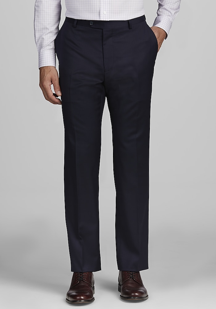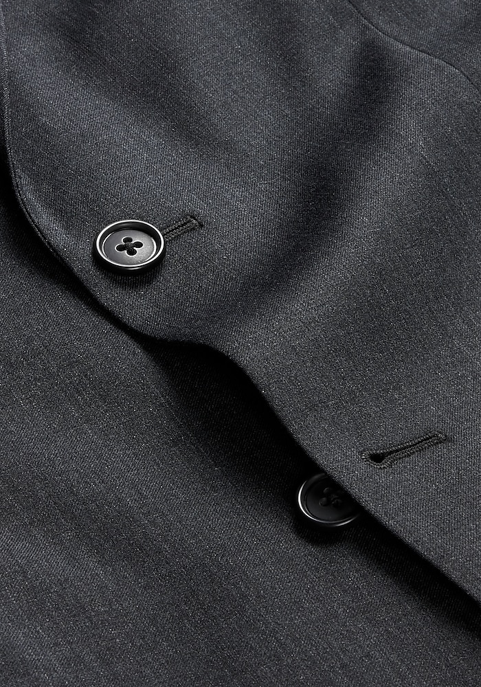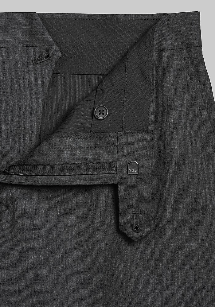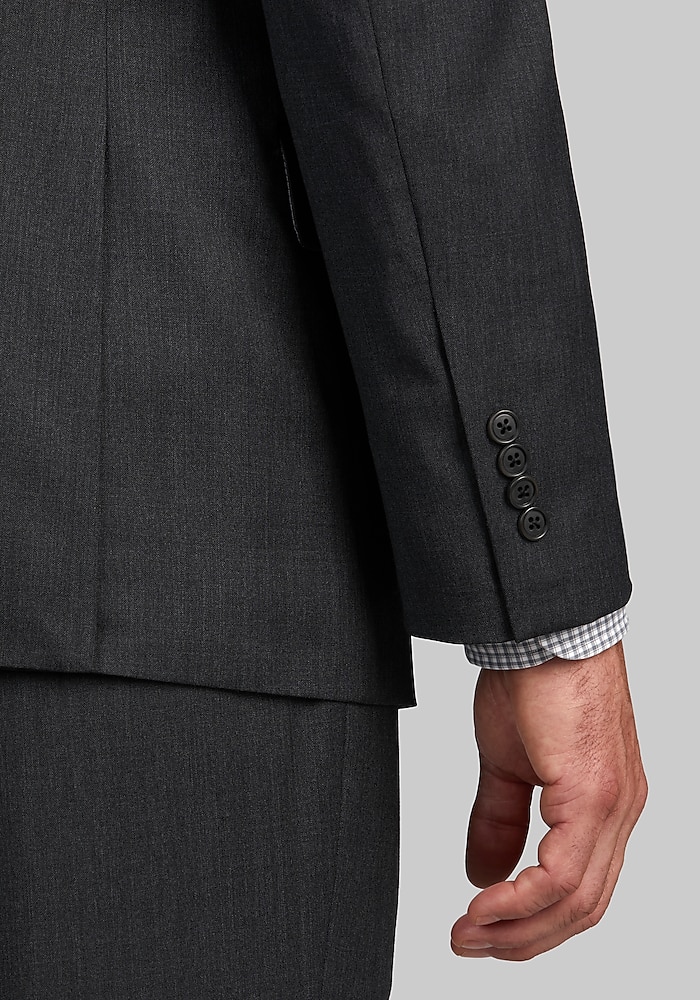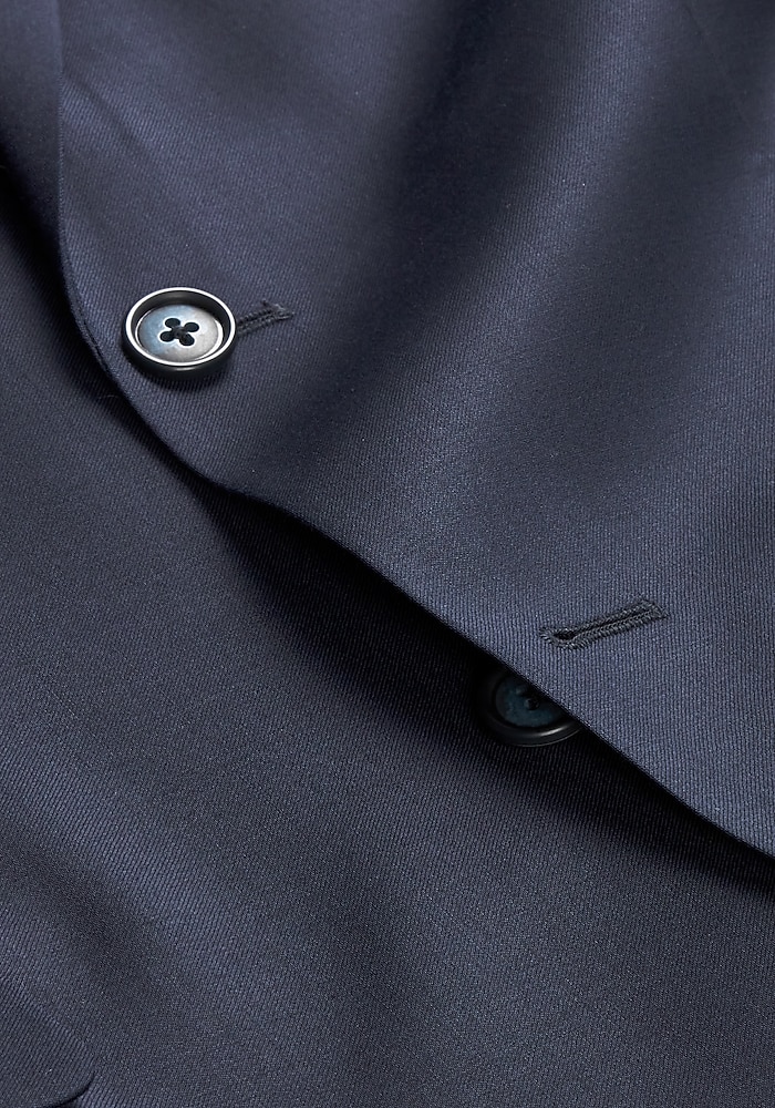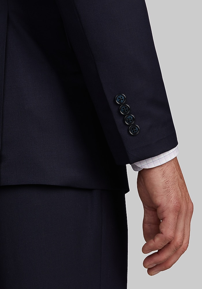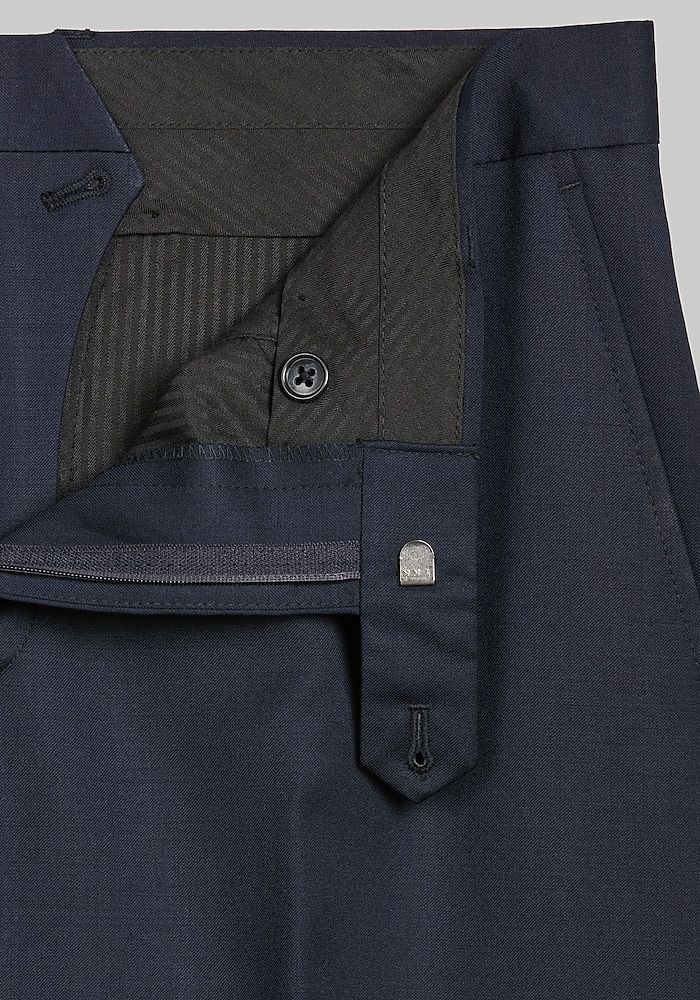 Product description This suit from Jos. A. Bank has a contemporary look that works well for today’s modern man. The fully lined jacket has a two-button closure, notch lapel, flap-front pockets, interior pockets and side vents. The flat-front slacks are unhemmed for easy alteration. Cotton pouch pockets. 100% wool. Dry clean only. Imported. This suit from Jos. A. Bank has a contemporary look that works well for today’s modern man. The fully lined jacket has a two-button closure, notch lapel, flap-front pockets, interior pockets and side vents. The flat-front slacks are unhemmed for easy alteration. Cotton pouch pockets. 100% wool. Dry clean only. Imported. TAILORED FIT LINING – SOLID COLOR POLY BLEND NO CANVAS CHEST PIECE – GARMENT USES MODERN FUSING TECHNOLOGY SUPER 100’S PLAIN WEAVE PANT – UNFINISHED BOTTOM FOR ALTERATION EASE PANT – PLAIN FRONT FRONT, HALF LINED TO KNEE 100% WOOL SIDE VENT JACKET, NOTCH COLLAR, 2 BUTTON.