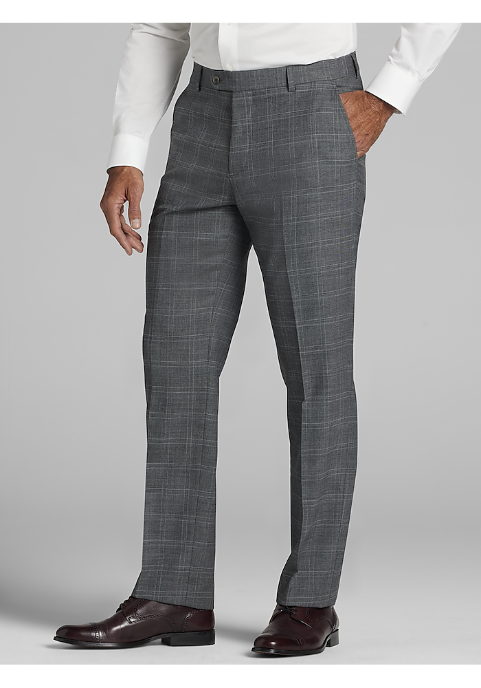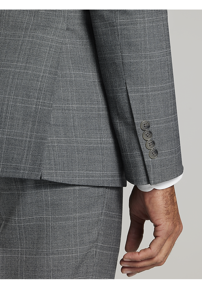 Product description Whether you’re preparing for a job interview, a business meeting, or a special event, this distinguished suit will work for you. Woven from a fine wool blend with built-in stretch, this notch-lapel suit is styled with flapped pockets and secured with a two-button closure. It’s finished with a Tailored Fit for a flattering, sophisticated look. Whether you’re preparing for a job interview, a business meeting, or a special event, this distinguished suit will work for you. Woven from a fine wool blend with built-in stretch, this notch-lapel suit is styled with flapped pockets and secured with a two-button closure. It’s finished with a Tailored Fit for a flattering, sophisticated look. NOTCH LAPEL TWO BUTTON FLAP POCKETS FULLY LINED 70% WOOL 27% POLYESTER 3% SPANDEX TAILORED FIT