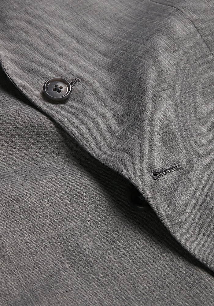 Product description Crafted with soft shoulder construction, this versatile suit separates jacket has a narrower notch lapel and Tailored Fit. With suit separates, you select jacket, pant, and vest sizes independently for a custom fit. Matching Pants: #3XR8 Matching Vest: #3XR4 Crafted with soft shoulder construction, this versatile suit separates jacket has a narrower notch lapel and Tailored Fit. With suit separates, you select jacket, pant, and vest sizes independently for a custom fit. Matching Pants: #3XUH TAILORED FIT FULLY LINED, W/ SCALLOPED FACING, CONTRAST DETAILS 2 BUTTON, SIDE VENT, NOTCH COLLAR SOFT SHOULDERS CONSTRUCTION NARROWER LAPEL AND BODY TEXTURED SOLID PATTERN 51%WOOL47%POLYESTER2%SPANDEX