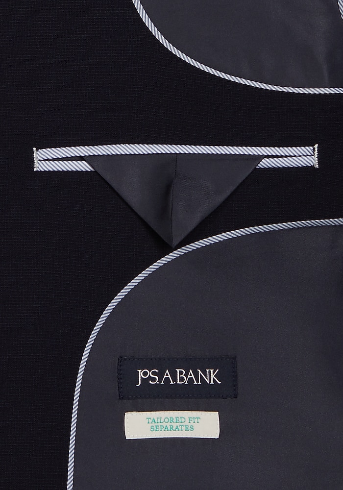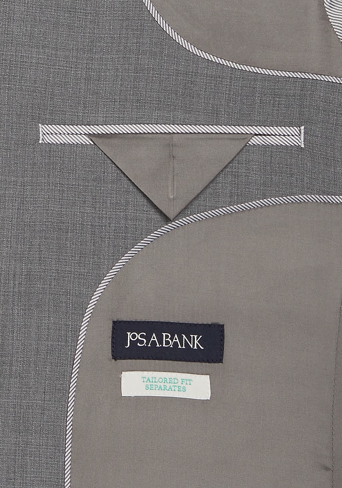 Product description With vintage details and a modern attitude, this jacket is part of Jos. A. Bank’s suit separates collection. It’s styled with soft shoulder construction for a more relaxed look. Suit separates let you choose your coat, pant and vest sizes separately to get a custom fit. Matching Pants: #3XRT Matching Vest: #3XR4 With vintage details and a modern attitude, this jacket is part of Jos. A. Bank’s suit separates collection. It’s styled with soft shoulder construction for a more relaxed look. Suit separates let you choose your coat, pant and vest sizes separately to get a custom fit. Matching Pants: #3XR3 VINTAGE DETAILS WITH A MODERN APPROACH TAILORED FIT FULLY LINED, W/ SCALLOPED FACING, CONTRAST DETAILS 2 BUTTON, SIDE VENT, NOTCH COLLAR SOFT SHOULDERS CONSTRUCTION NARROWER LAPEL AND BODY TEXTURED SOLID PATTERN 98%WOOL2%LASTOL