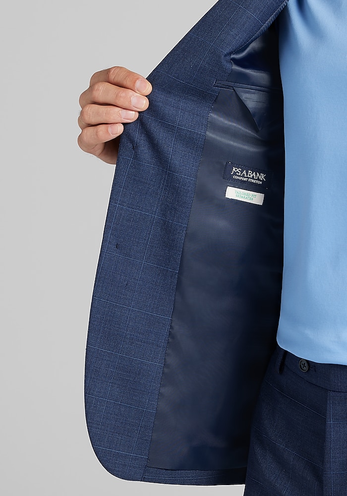 Product description Elevate your suit game with our suit separates collection that lets you choose your jacket, pant, and/or vest sizes individually for a custom fit without a trip to the tailor. This Tailored Fit suit separates jacket is made from a quality wool blend with stretch built-in for optimal comfort. TAILORED FIT JACKET, FULLY LINED, INTERIOR POCKETS JAB LABEL NOTCH LAPEL 70% WOOL 27% POLYESTER 3% SPANDEX