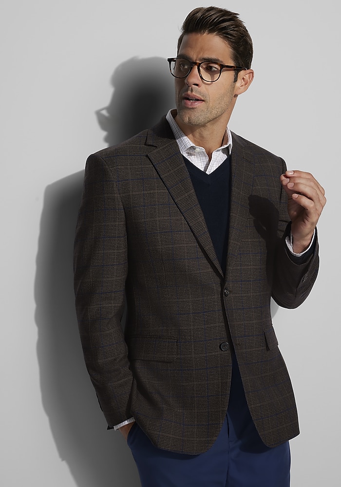 Product description This wool-blend sportcoat, featuring a classic plaid pattern, combines timeless style with modern versatility. Fully lined for added comfort and structure, it offers a Traditional Fit that ensures a relaxed yet polished silhouette. Perfect for both casual and dressy occasions, this sport coat is a versatile wardrobe essential you’ll reach for again and again. This wool-blend sportcoat, featuring a classic plaid pattern, combines timeless style with modern versatility. Fully lined for added comfort and structure, it offers a Traditional Fit that ensures a relaxed yet polished silhouette. Perfect for both casual and dressy occasions, this sport coat is a versatile wardrobe essential you’ll reach for again and again. NOTCH LAPEL TWO BUTTON FLAP POCKET FULLY LINED TRADITIONAL FIT 60% WOOL 38% POLYESTER 2% SPANDEX
