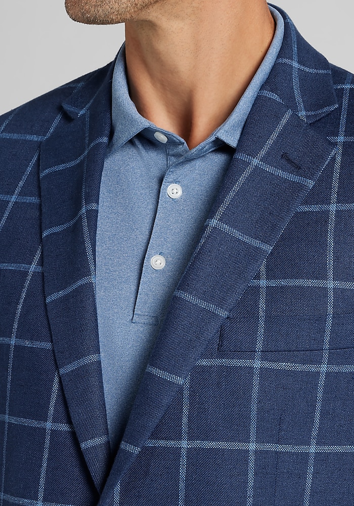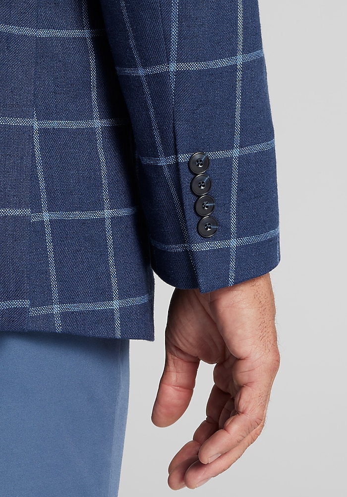 Product description Showcasing a special linen blend that is lightweight, breathable, and flexible, this dapper sportcoat is designed for versatility and freedom of movement. Comprised of comfort stretch fabric, it pairs a notch lapel with a two-button closure and is cut with a Tailored Fit. From business trips to happy hours to weekend events, it is sure to keep you both looking and feeling cool. BT JAB TRAD 2BTN NAVY WINDOWPANE SPORTCOAT NOTCH COLLAR FLAP POCKET TWO BUTTON BUTTERFLY LINED COMFORT STRETCH 53% LINEN 27% POLYESTER 20% ELASTOMULTIESTER TRAD FIT