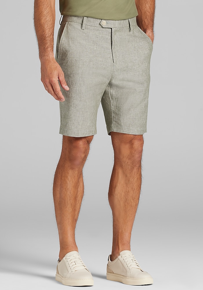 Product description Ready to soak up the sun? Fashioned from a comfort-stretch fiber blend with breathable linen and responsibly grown cotton, these Jos. A. Bank shorts will make life feel like a beach. Styled with a smooth, flat front and a flattering, Tailored Fit, they pair well with sport shirts, polos, and tees alike. TAILORED FIT STRETCH FABRIC RESPONSIBLY GROWN COTTON 54% LINEN, 23% COTTON, 14% POLYESTER, 7% VISCOSE, 2% ELASTANE MACHINE WASHABLE IMPORTED