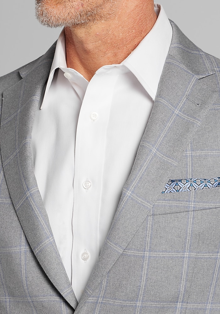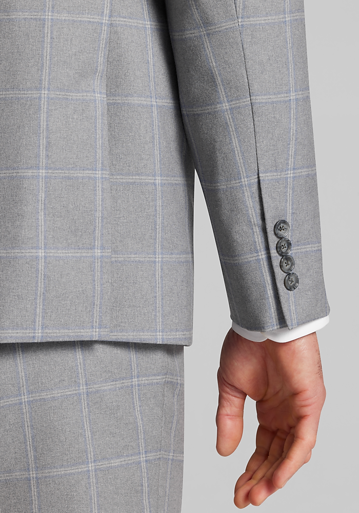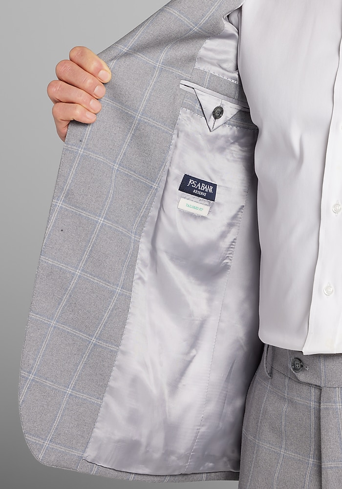 Product description Breathable wool and a bold windowpane plaid define this fine suit. From the Reserve Collection, it is handsomely detailed with a notch lapel, flapped pockets, and a flattering, Tailored Fit. Whether worn for business or other important affairs, this two-piece suit will surely elevate your look. Breathable wool and a bold windowpane plaid define this fine suit. From the Reserve Collection, it is handsomely detailed with a notch lapel, flapped pockets, and a flattering, Tailored Fit. Whether worn for business or other important affairs, this two-piece suit will surely elevate your look. 100% WOOL TAILORED FIT NOTCH LAPEL TWO BUTTON FLAP POCKET FULLY LINED