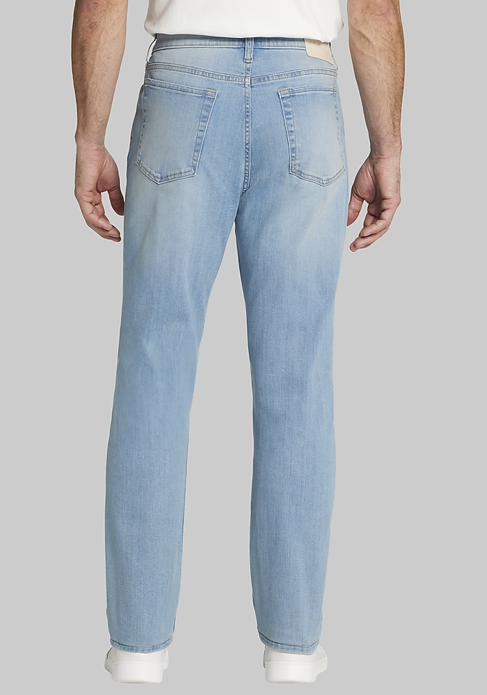 Product description These casual cotton-blend jeans from Jos. A. Bank are woven with just the right amount of stretch for total comfort. Cut with a straight leg opening, they sit at the hips and are styled with light whiskering and fading for that worn-in look you’ll love. These cotton-blend jeans from Jos. A. Bank are woven with just the right amount of stretch for total comfort. Styled with a straight leg opening, they sit at the hips and offer that casual, cool look you’ll love. JOSEPH A BANK WOVEN WITH JUST THE RIGHT AMOUNT OF STRETCH FOR COMFORT SITS ON THE HIP WITH A STRAIGHT LEG OPENING WITH CLEANKORE DYEING PROCESS, DENIM CAN NOW BE ECO-FRIENDLY & SUSTAINABL SUBSTANTIAL REDUCTION OF WATER, CHEMICALS, AND ENERGY 91% COT