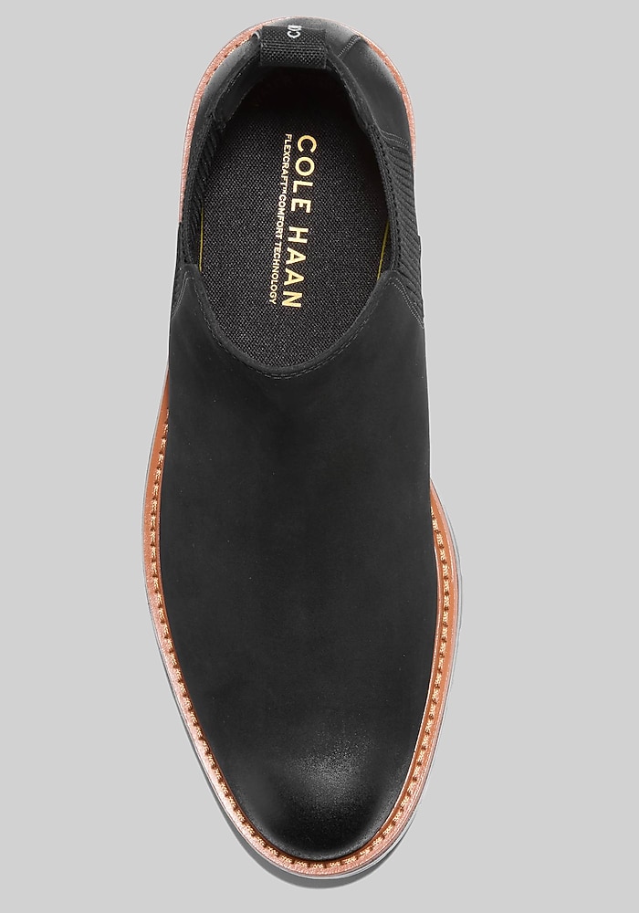 Product description These Chelsea boots blend classic style with modern innovation for unmatched all-day comfort. The refined silhouette transitions effortlessly from office to evening. Inside, Cole Haan’s FlexCraft™ technology delivers hidden foam cushioning and enhanced flexibility, making each step feel smooth and supported. The lightweight Grand.OS energy foam sole adds responsive comfort and shock absorption, while the durable construction ensures lasting wear. Perfect for professionals on the move, these boots elevate your look without compromising on comfort. Water-resistant EVA outsole and footbed 80% Polyester, 10% Leather, 5% Nylon Lining Imported Chelsea boots