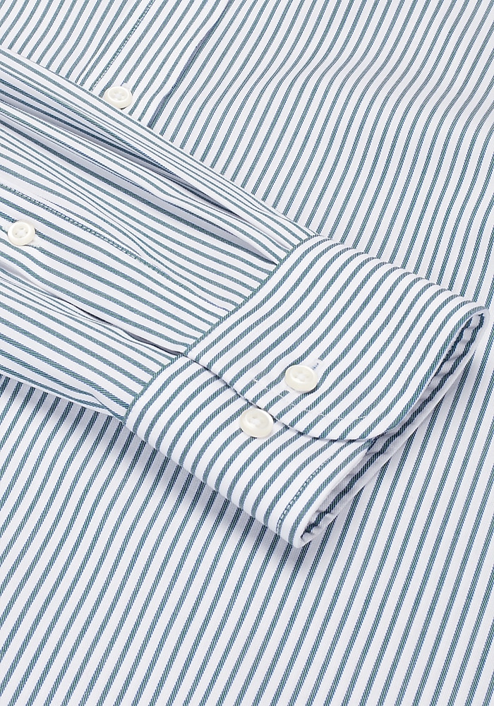 Product description A timeless essential for your professional wardrobe, this dress shirt offers classic style with a modern cut. The sophisticated Bengal stripe pattern adds a distinguished visual texture, while the durable non-iron fabric ensures a crisp, neat look all day long. A spread collar and tailored Slim Fit create a polished silhouette that is perfect for pairing with a suit, sport coat, or wearing on its own for a sharp business-casual ensemble. Slim Fit Spread collar Non-iron fabric with stretch 98% cotton, 2% spandex Machine washable Imported