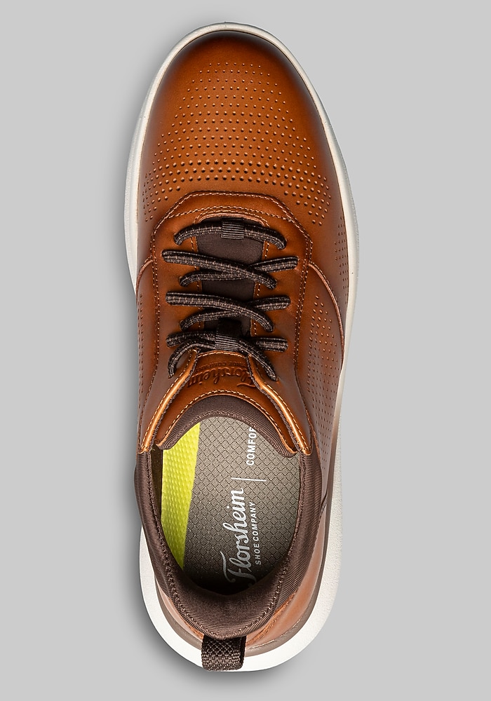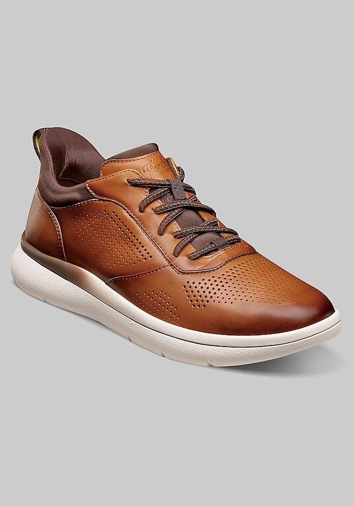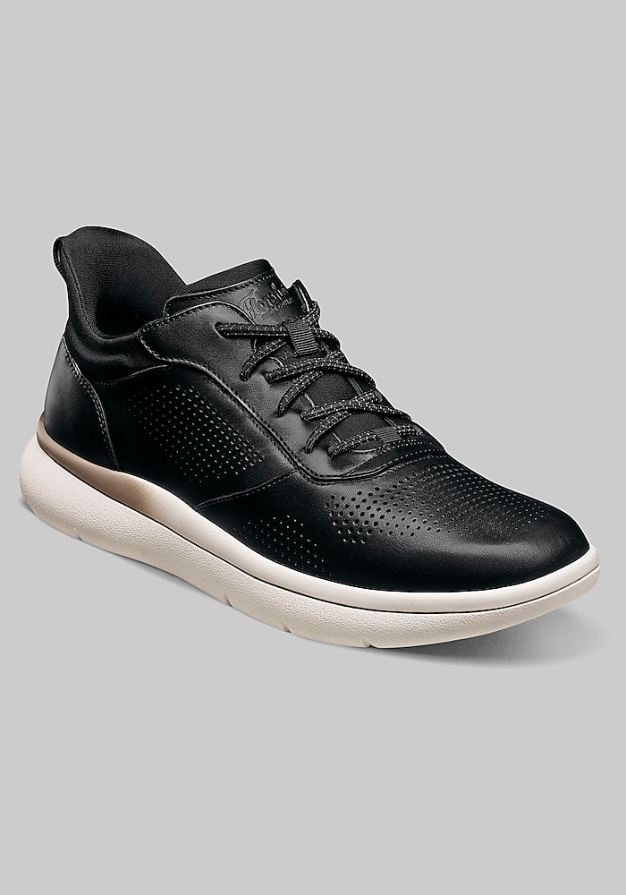 Product description Designed for effortless wear, this sneaker features Florsheim s SupaStep hands-free technology for easy on-and-off and a stabilized heel for added support. The perforated toe detail adds a modern edge, while elastic no-tie laces give it a clean look with slip-on convenience. Perfect for life on the go, it combines casual style with all-day comfort. Elastic, no-tie laces SupaStep hands-free technology Breathable textile lining Leather Imported Sneakers