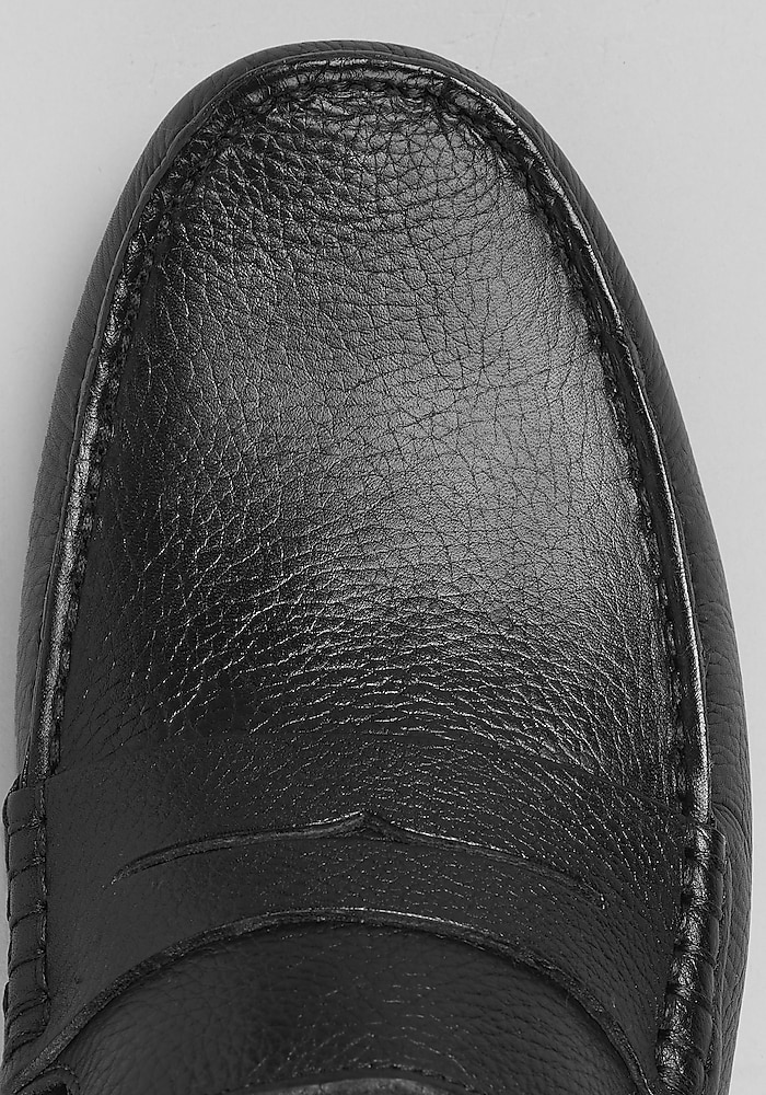 Product description This loafer offers a relaxed yet refined take on a classic. Featuring a comfortable slip-on design with a distinctive moc toe and traditional penny keeper, it blends timeless style with everyday ease. This versatile footwear is perfect for adding a polished touch to casual outfits or smart-casual attire. Moc toe Synthetic lining Rubber driving sole Leather Imported