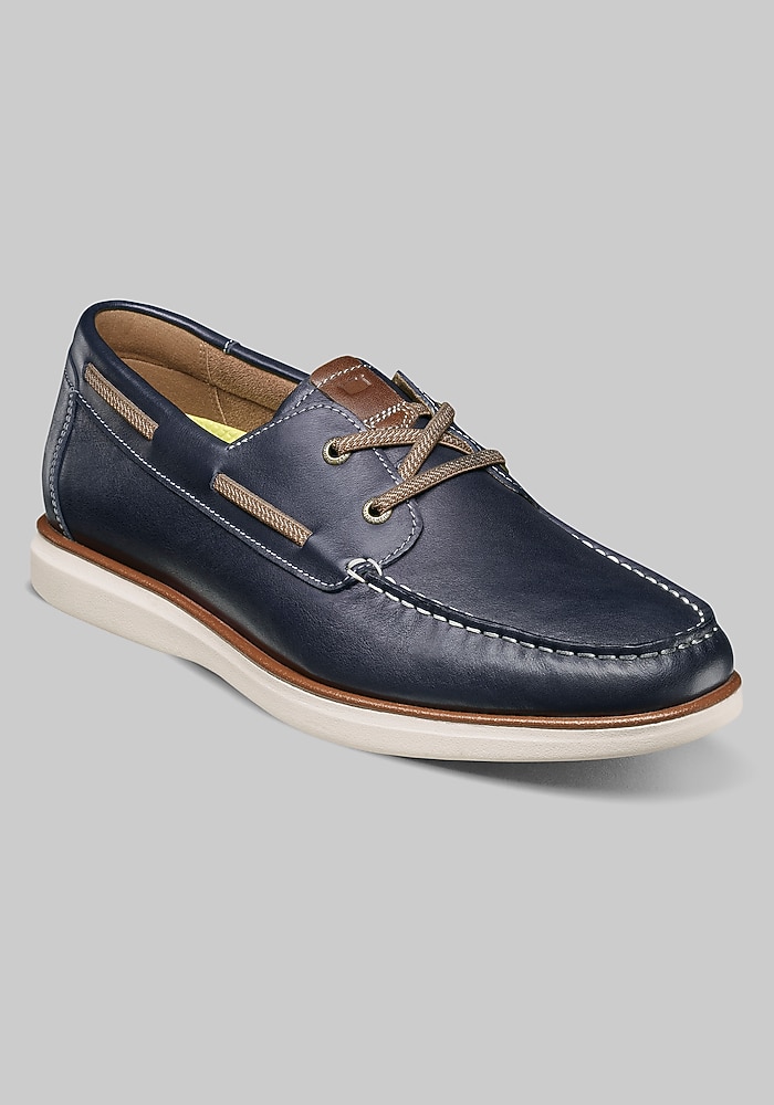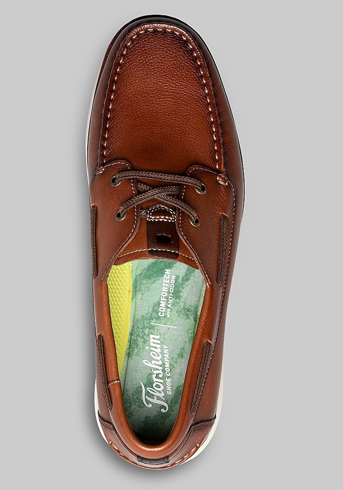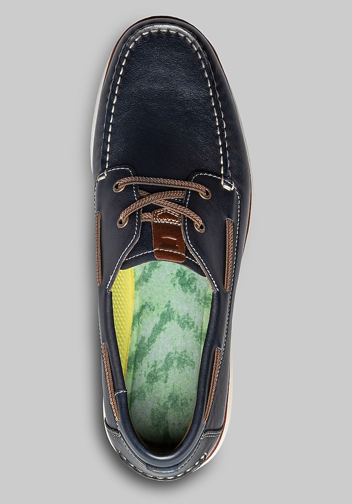 Product description Easygoing and effortlessly cool, this moc toe boat shoe is built for comfort and convenience. The elastic no-tie laces create a slip-on fit with a laid-back vibe, while the Suedetec lining adds a soft touch inside. A cushioned EVA outsole with rubber traction keeps every step light and steady perfect for dockside days, weekend getaways, or everyday wear. Elastic no-tie laces Moc toe Soft, comfortable Suedtec lining Durable, cushioned EVA outsole Rubber traction Leather Imported Boat shoes