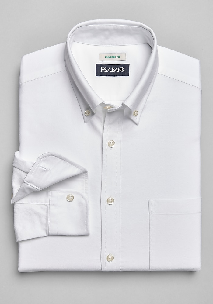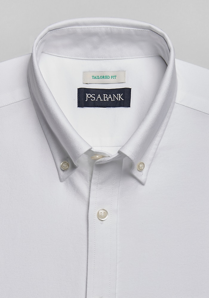 Product description Oxford shirts like this one from Jos. A. Bank are an extremely versatile wardrobe choice, walking the line between casual and professional with ease. Wear with chinos or even a sportcoat and jeans for a relaxed look that’s still professional. Oxford shirts like this one from Jos. A. Bank are an extremely versatile wardrobe choice, walking the line between casual and professional with ease. Wear with chinos or even a sportcoat and jeans for a relaxed look that’s still professional. Tailored Fit Button-down collar Barrel cuffs 100% cotton Machine washable Imported